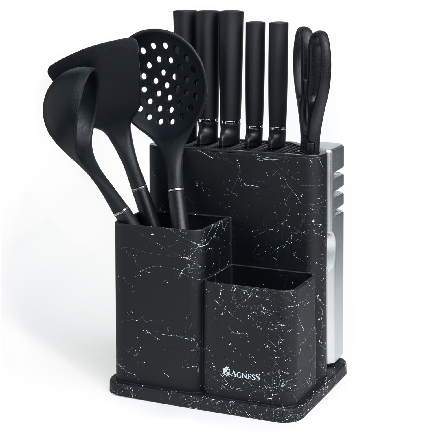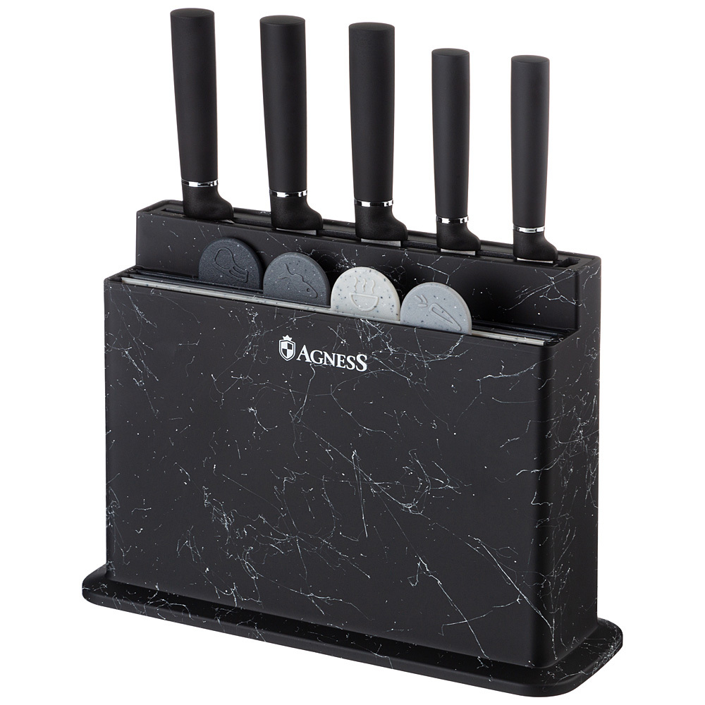 НАБОР AGNESS ИЗ 11ПР:5 НОЖЕЙ,ПОЛОВНИК,ЛОПАТКА,ШУМОВКА,ПОДСТАВКА,НОЖЕТОЧКА,НОЖНИЦЫ,ЧЕРНЫЙ МРАМОР/СЕРЫ 10 фото