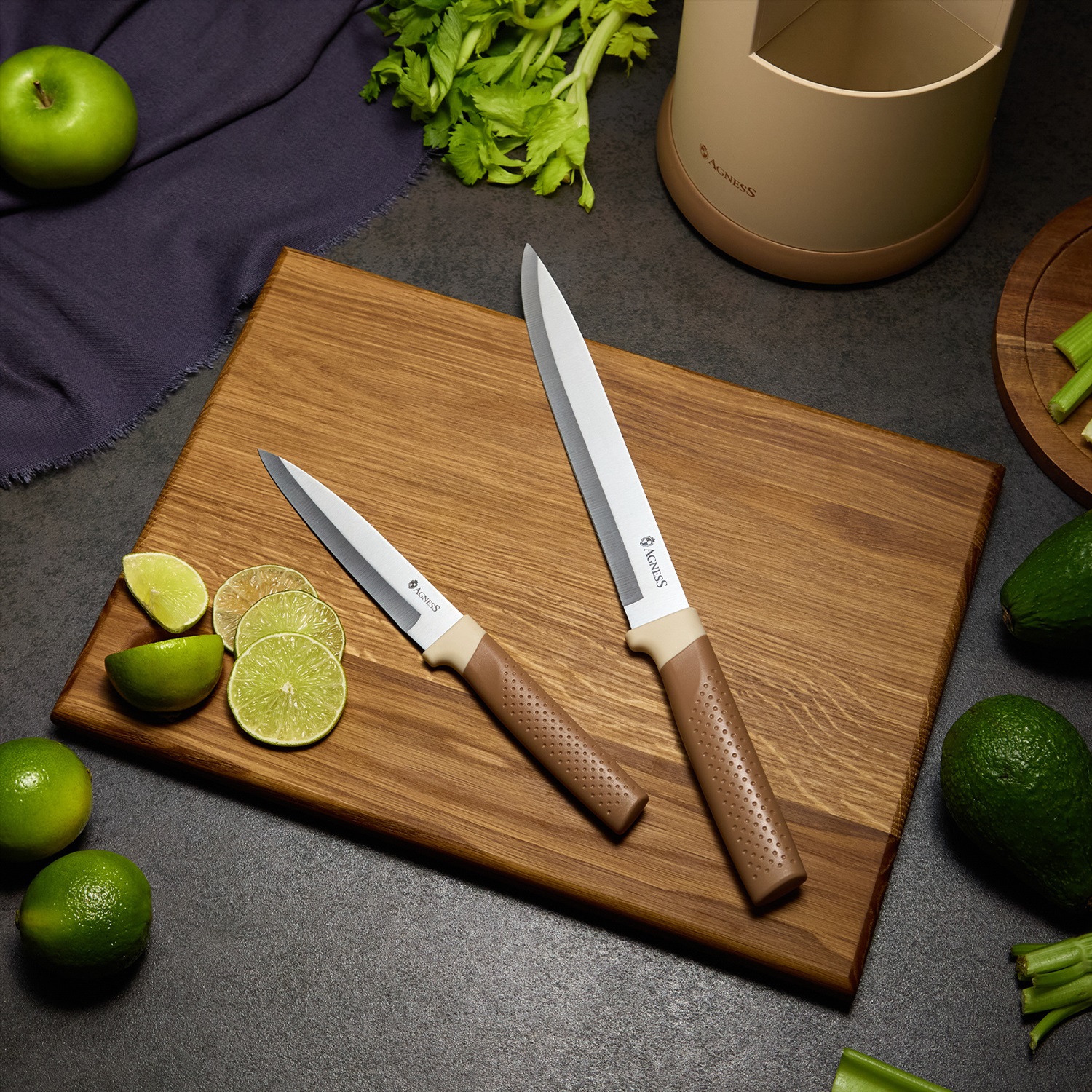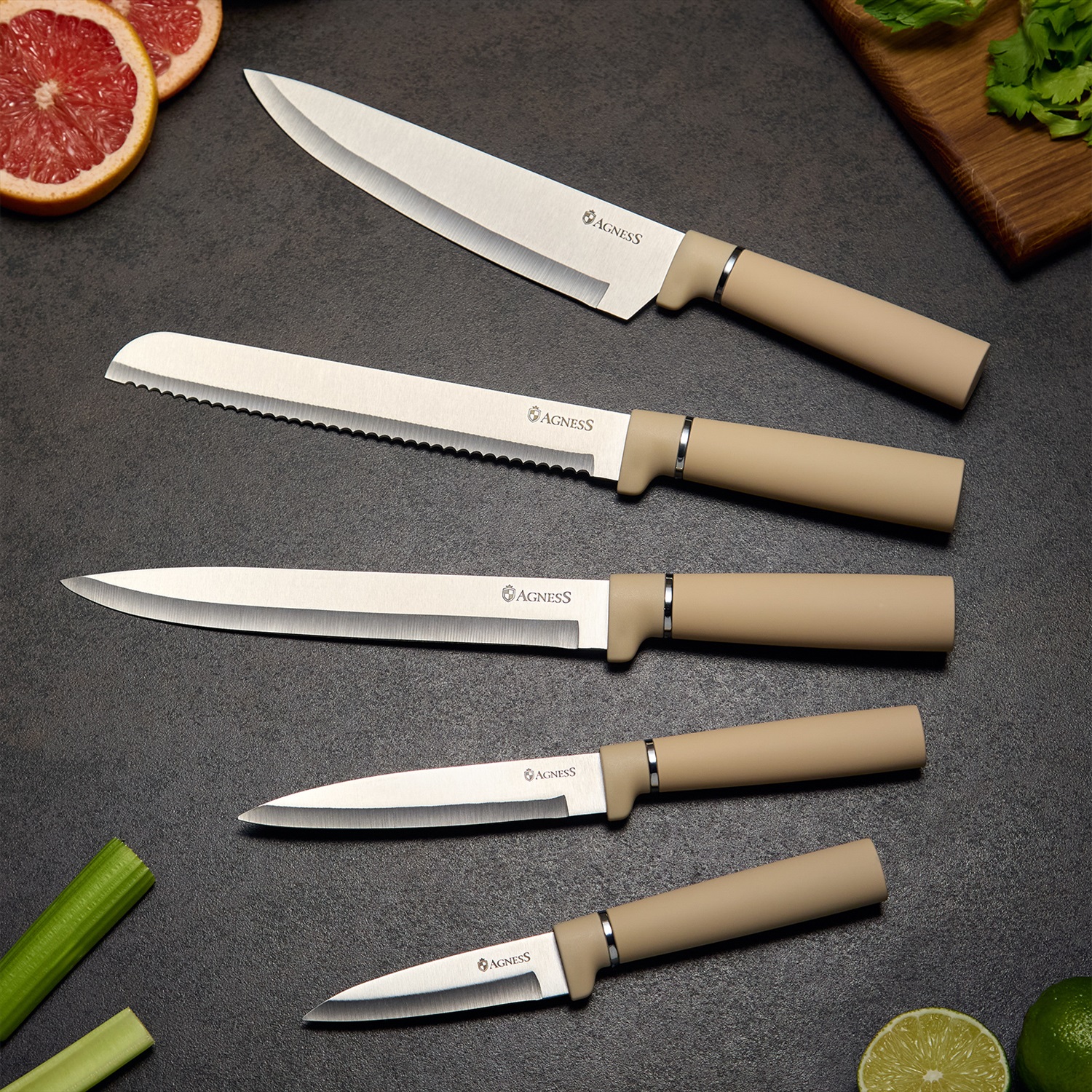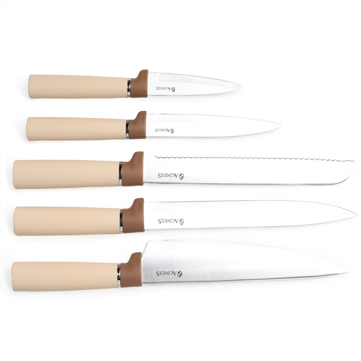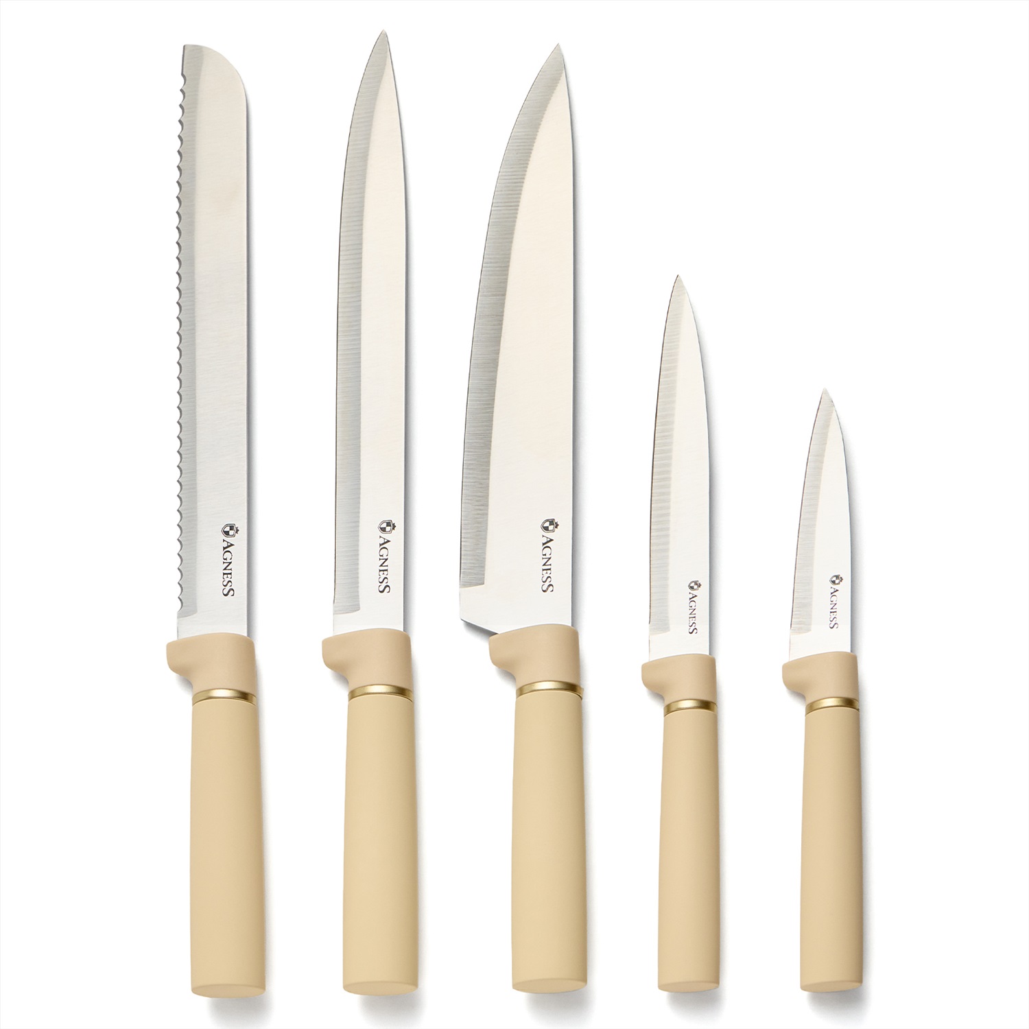 НАБОР AGNESS ИЗ 10ПР: 5 НОЖЕЙ, 4 ДОСКИ И ПОДСТАВКА, ЦВЕТ: БЕЖЕВЫЙ 7 фото