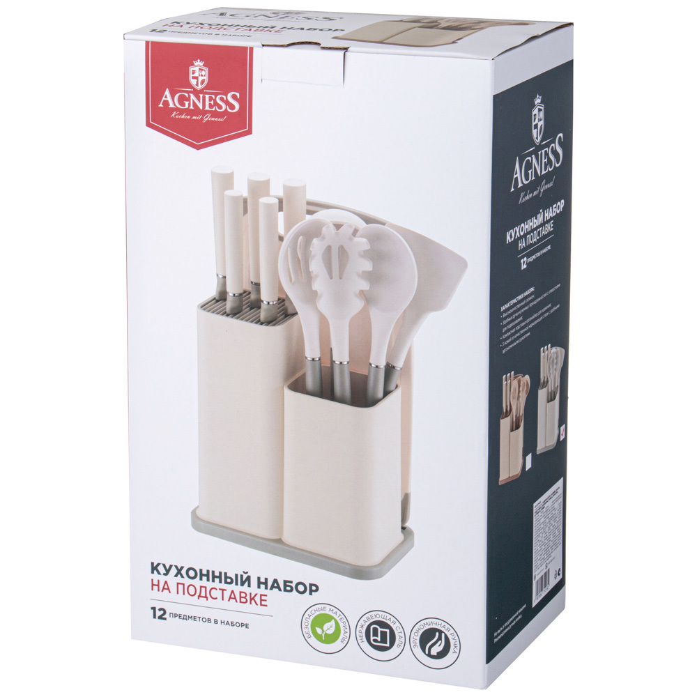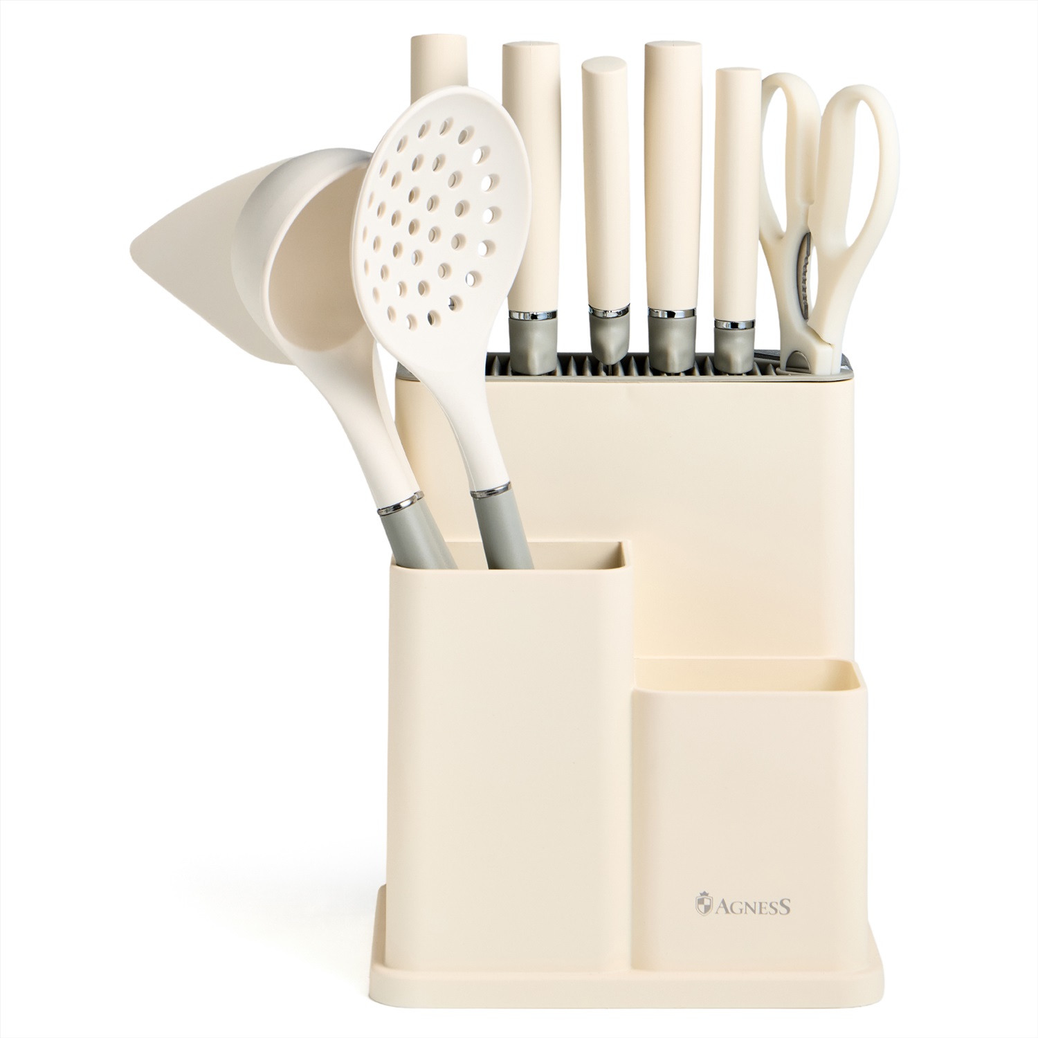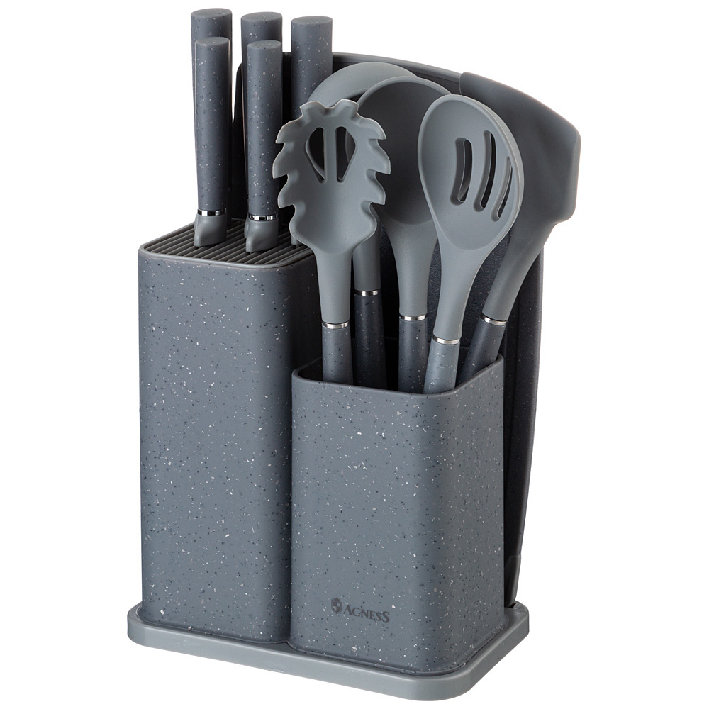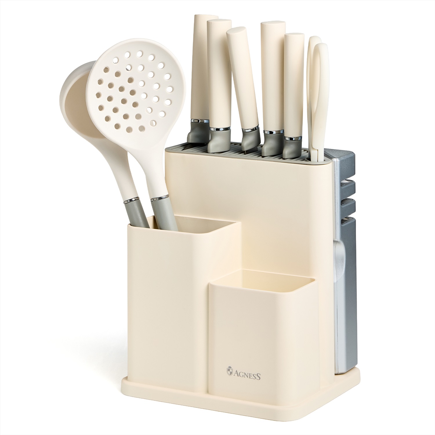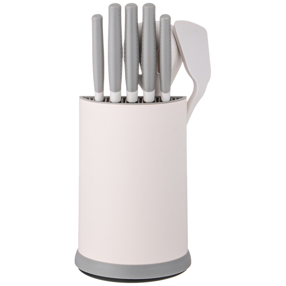 НАБОР AGNESS ИЗ 11ПР: 5 НОЖЕЙ,ПОЛОВНИК,ЛОПАТКА,ШУМОВКА,ПОДСТАВКА,НОЖЕТОЧКА,НОЖНИЦЫ, ЦВЕТ:БЕЛЫЙ/СЕРЫЙ 9 фото