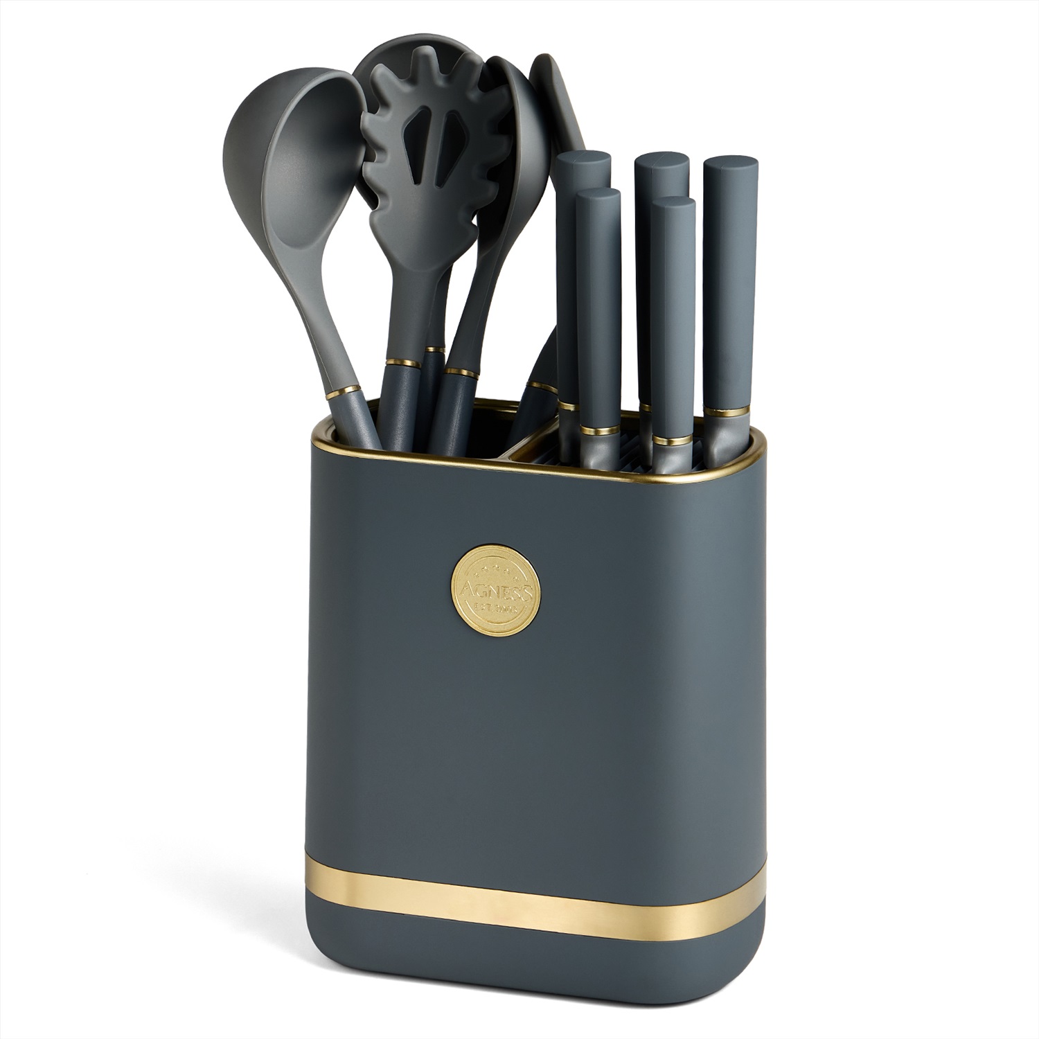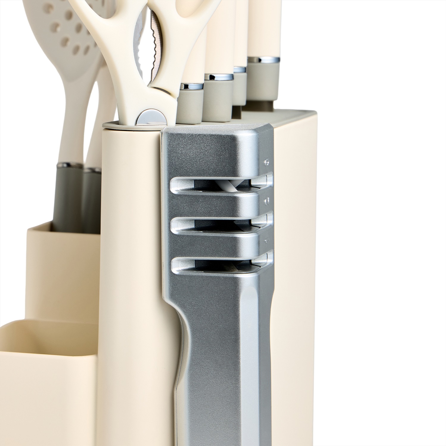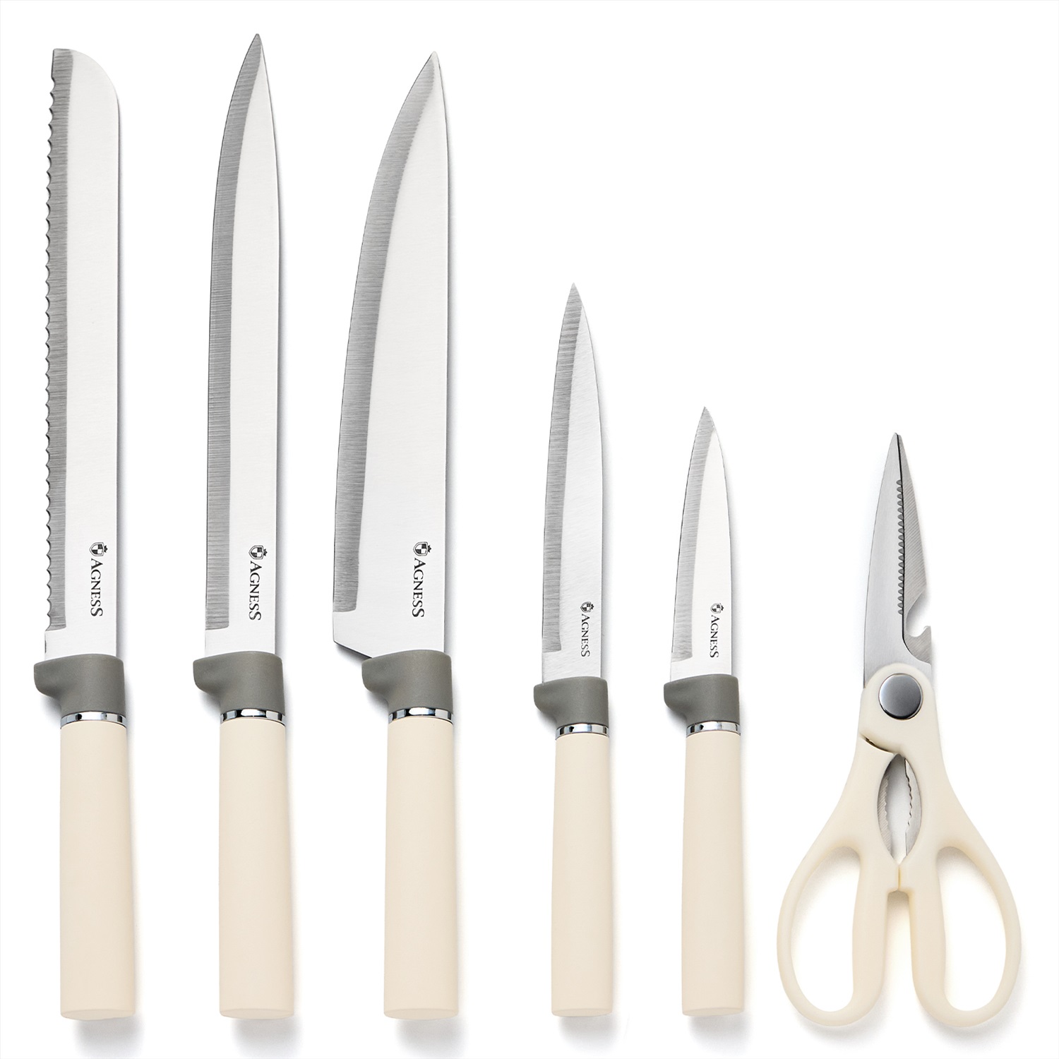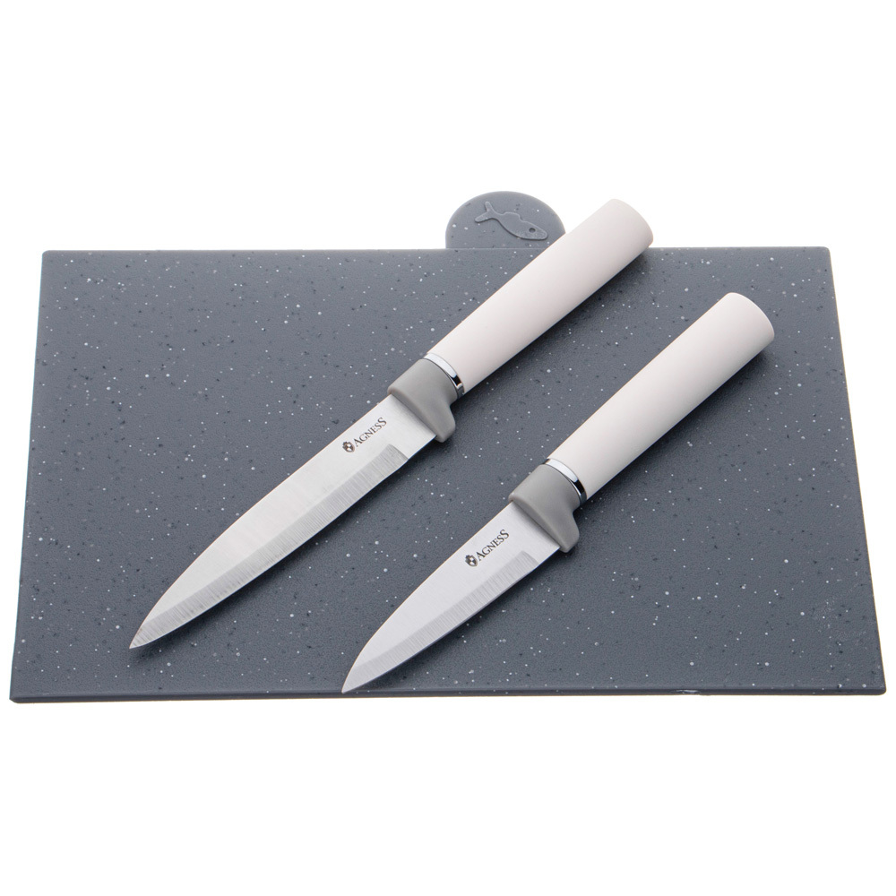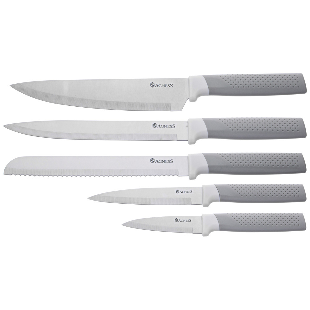 НАБОР AGNESS ИЗ 11ПР: 5 НОЖЕЙ,ПОЛОВНИК,ЛОПАТКА,ШУМОВКА,ПОДСТАВКА,НОЖЕТОЧКА,НОЖНИЦЫ, ЦВЕТ:БЕЛЫЙ/СЕРЫЙ 9 фото