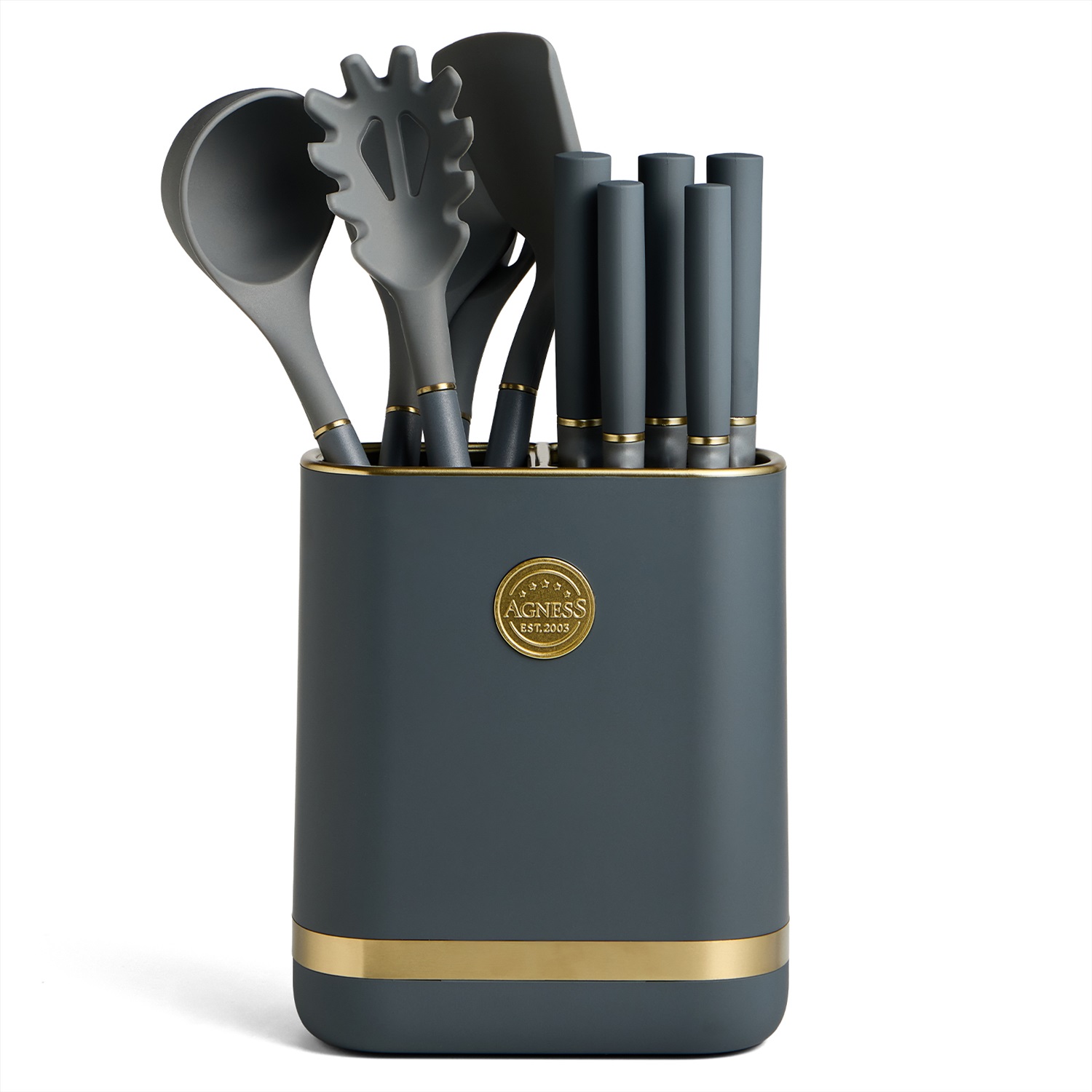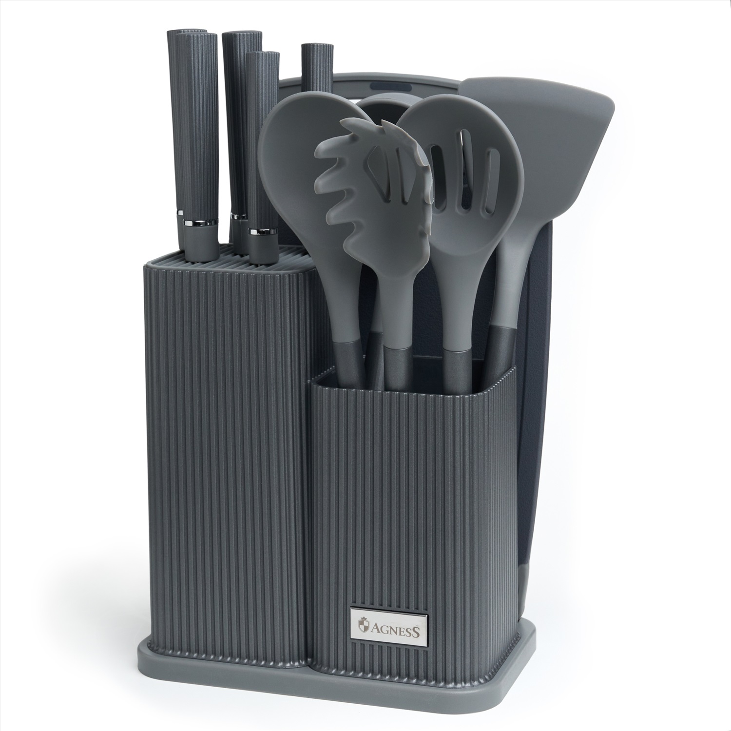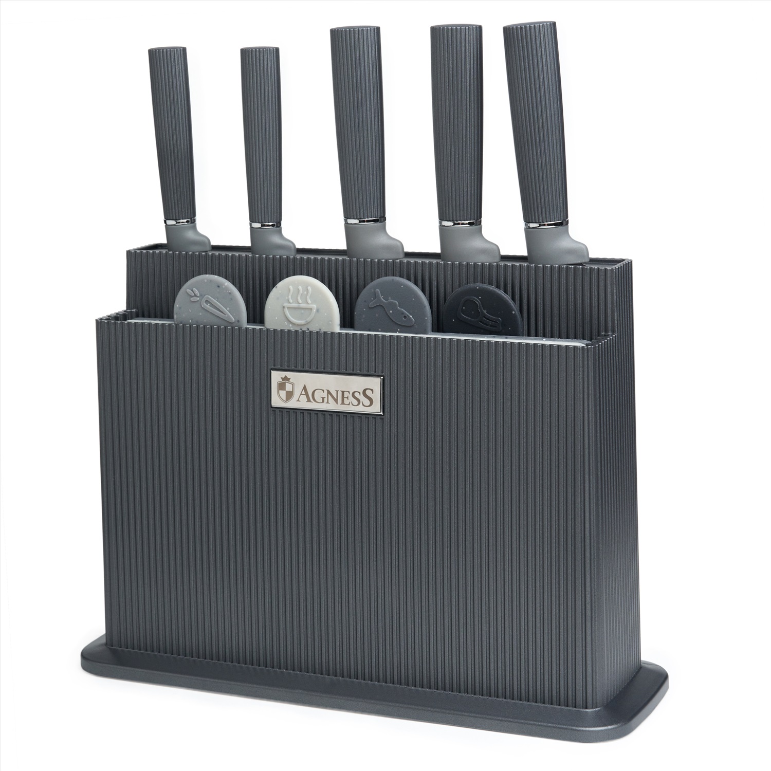 НАБОР AGNESS ИЗ 9ПР: 5 НОЖЕЙ, ПОЛОВНИК, ЛОПАТКА И ШУМОВКА, ВРАЩАЮЩАЯСЯ ПОДСТАВКА, ЦВЕТ: СЕРЫЙ 6 фото