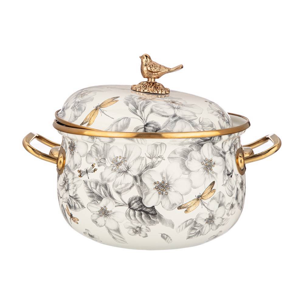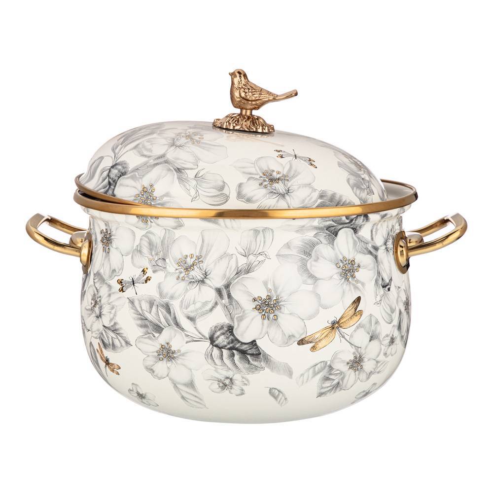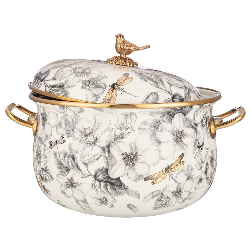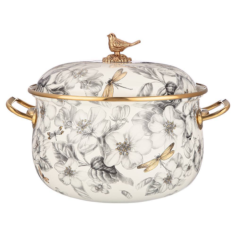 КАСТРЮЛЯ ЭМАЛИРОВАННАЯ AGNESS С КРЫШКОЙ, СЕРИЯ ЯБЛОНЕВЫЙ САД 4,8Л, ДИА.22СМ ПОДХОДИТ ДЛЯ ИНДУК.ПЛ 4 фото