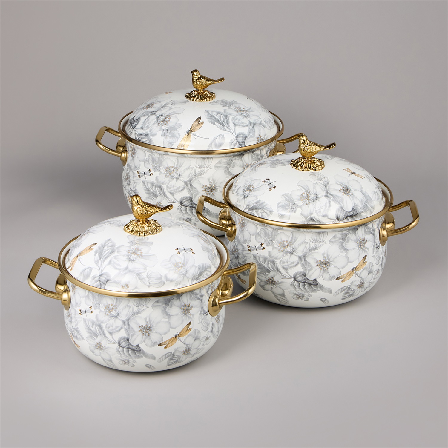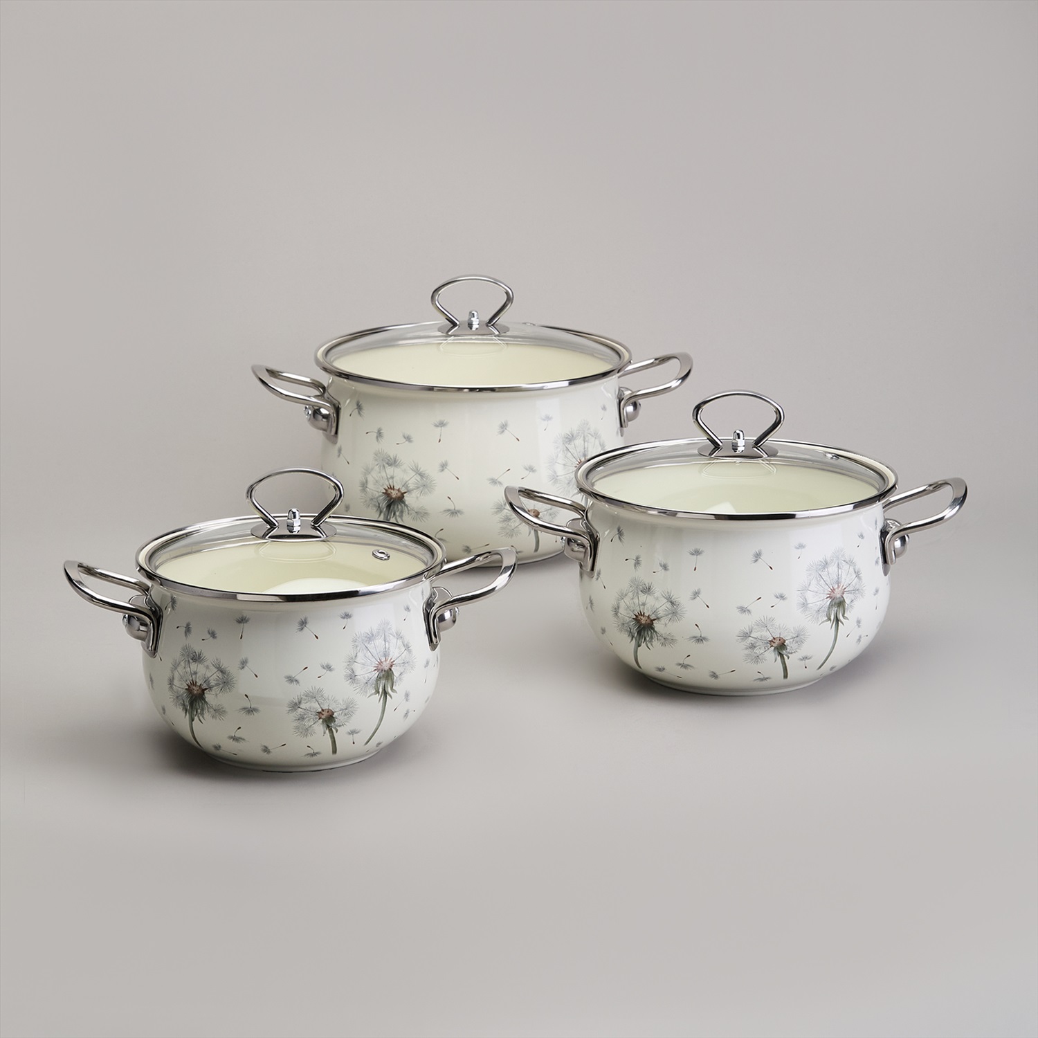 НАБОР КАСТРЮЛЬ ЭМАЛИРОВАННЫЙ, СЕРИЯ "DANDELION" 6ПР. 2,0/2,8/3,8Л ДИА.18/20/22СМ 6 фото