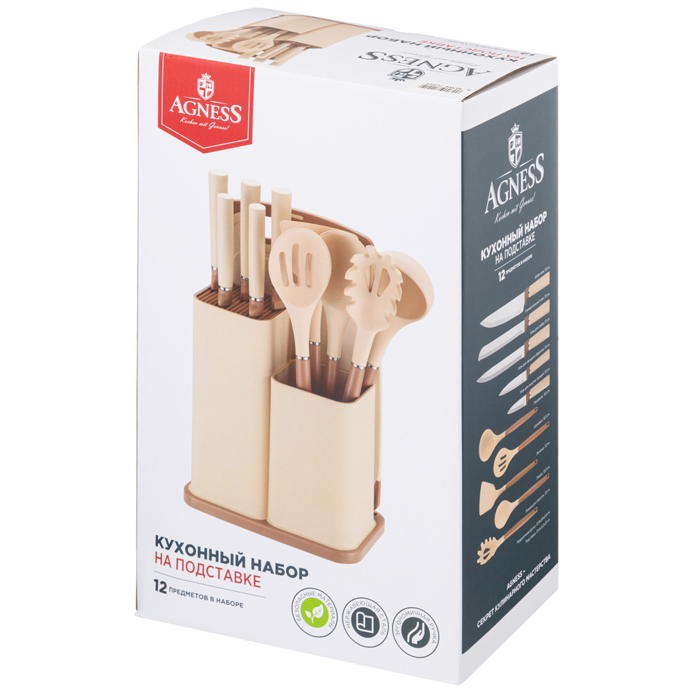 НАБОР AGNESS ИЗ 12ПР: 5 НОЖЕЙ,ДОСКА,ПОДСТАВКА,ПОЛОВНИК,ЛОЖКА,ЛОПАТКА,ШУМОВКА,ЛОЖКА ДЛЯ СПАГЕТТИ 8 фото