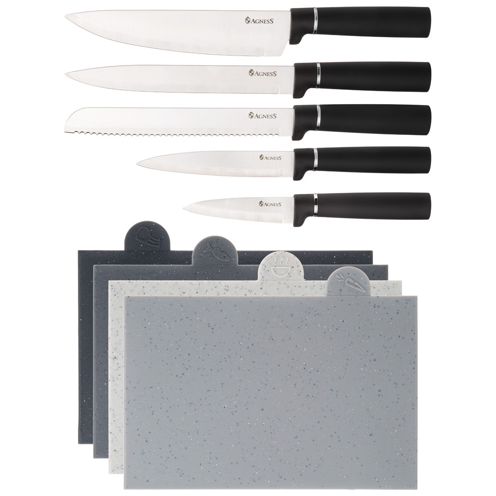 НАБОР AGNESS ИЗ 10ПР: 5 НОЖЕЙ, 4 ДОСКИ И ПОДСТАВКА, ЦВЕТ: ЧЕРНО-СЕРЫЙ 8 фото
