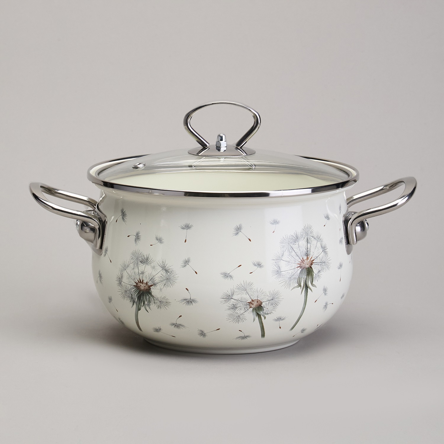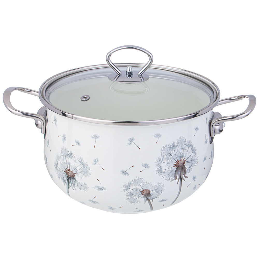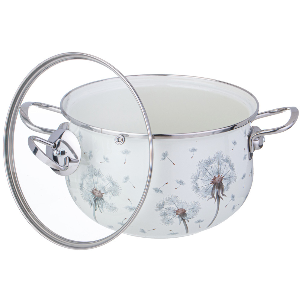 КАСТРЮЛЯ AGNESS ЭМАЛИРОВАННАЯ СО СТЕКЛЯННОЙ КРЫШКОЙ СЕРИЯ "DANDELION", 3,8 Л ДИА. 22СМ 4 фото
