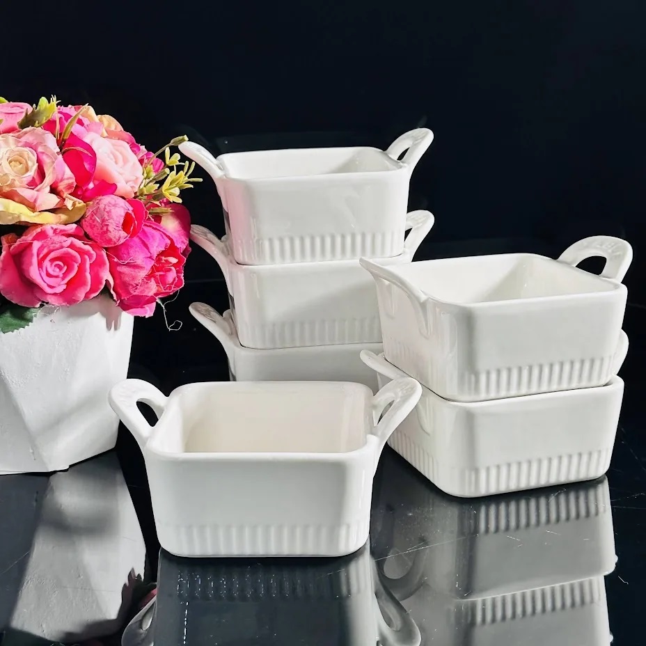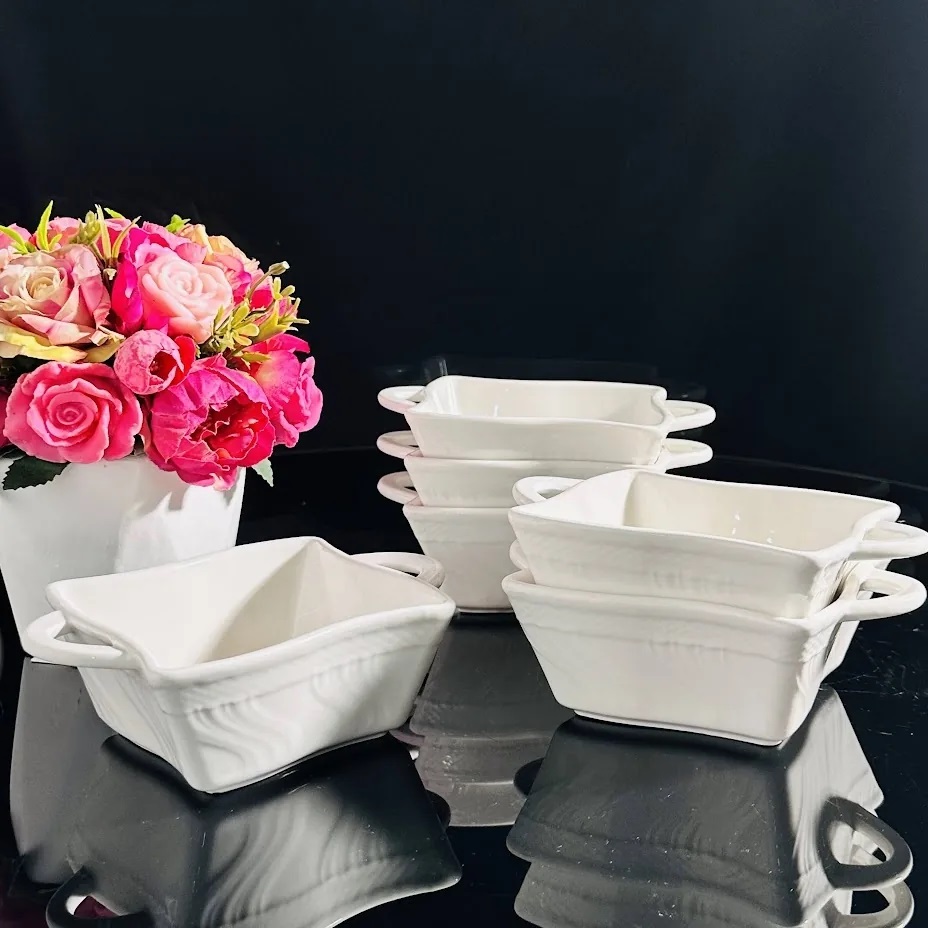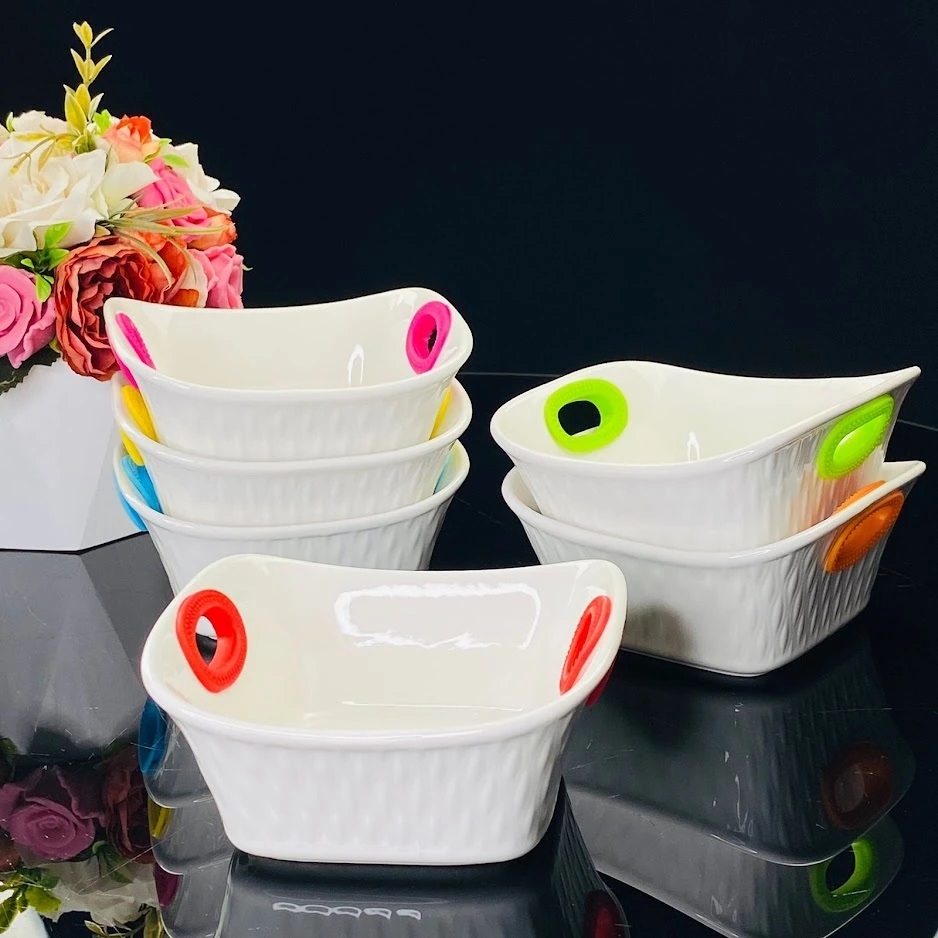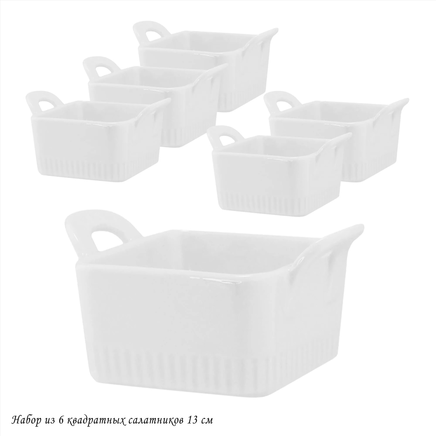 142-062 Набор из 6 квадратных салатников 13см с силикон.ручками в под.уп.(х6)Фарфор 3 фото