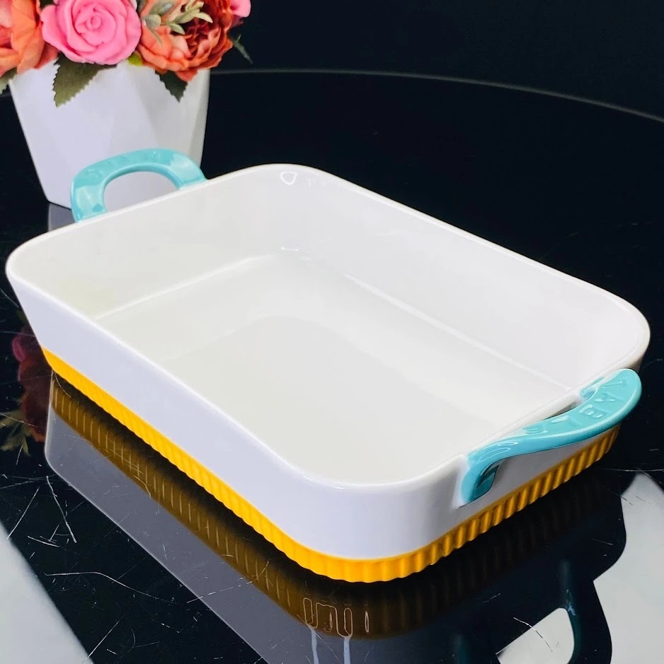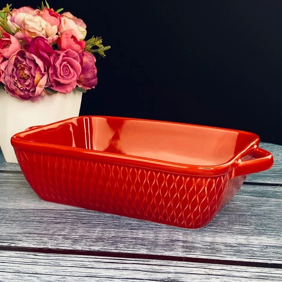 142-142 Прямоугольное блюдо для запекания 26см с силикон.ручками в под.уп.(х12)Фарфор 3 фото