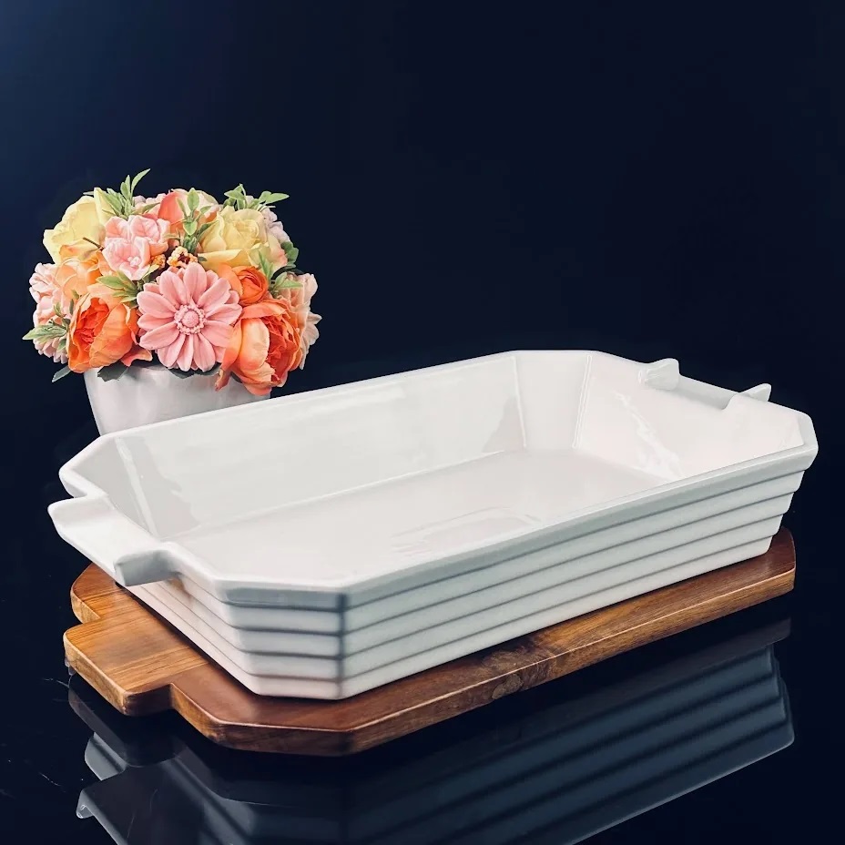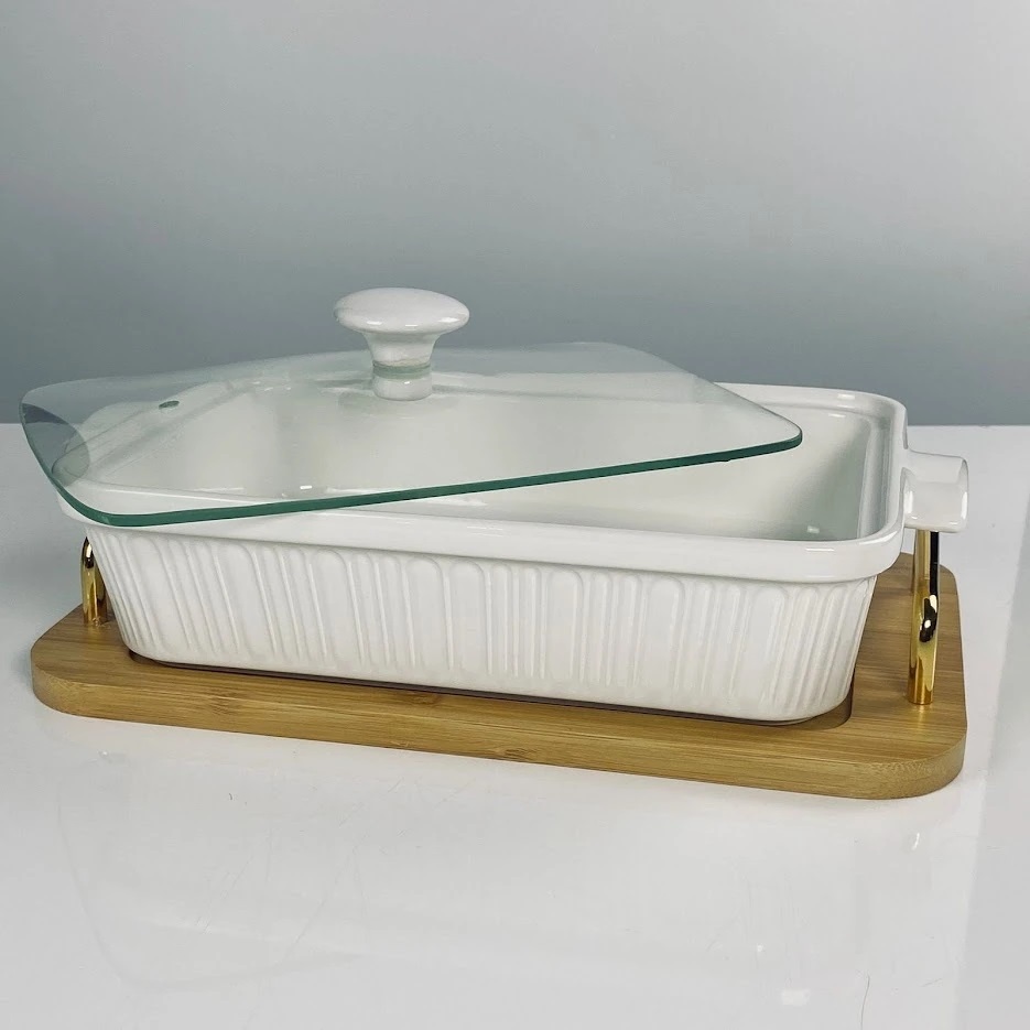 142-110 Прямоугольное блюдо для запекания 30,5см с дерев.крышкой/подставкой в под.уп.(х8)Фарфор 2 фото