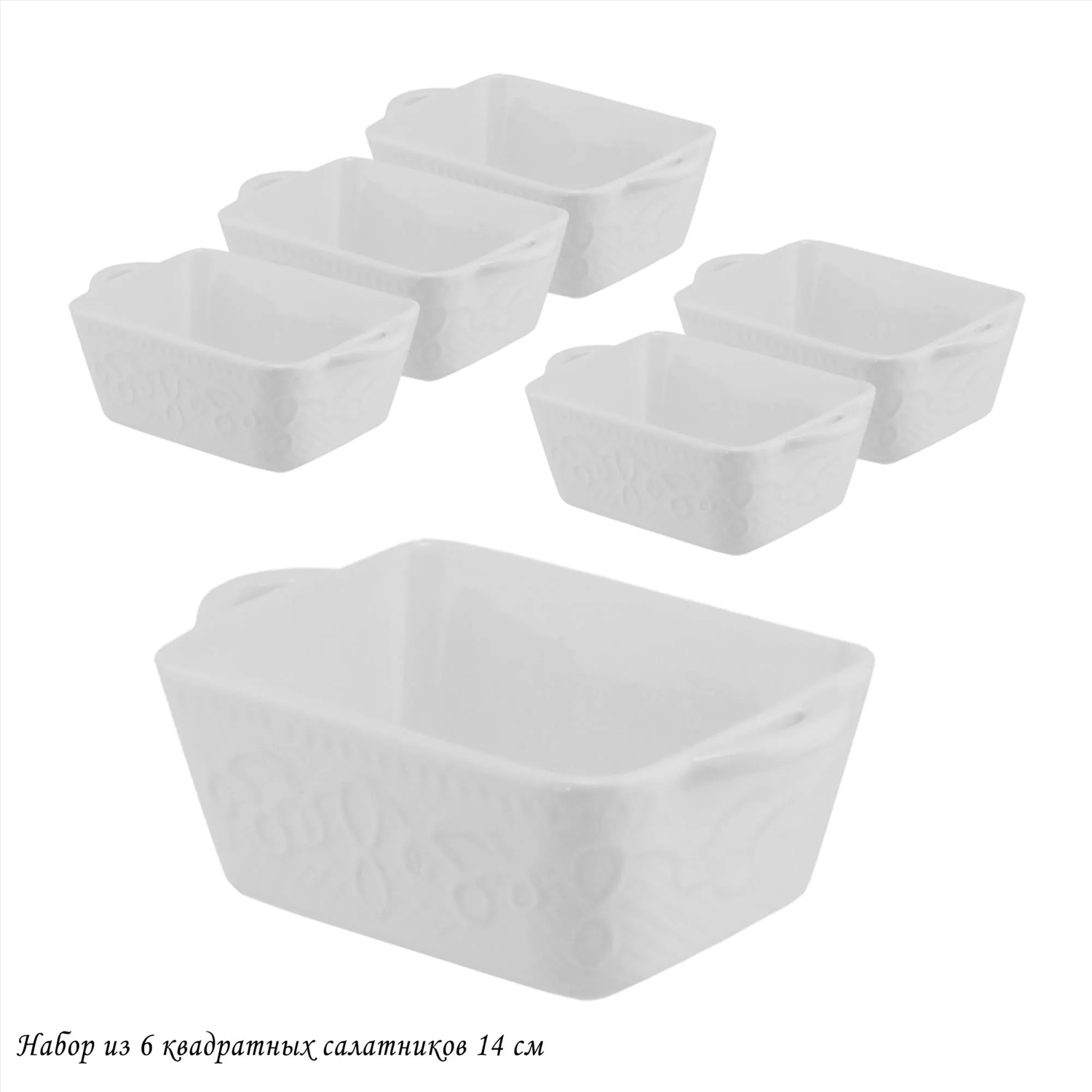 142-050 Набор из 6 квадратных салатников 14см в под.уп.(х6)Фарфор 2 фото