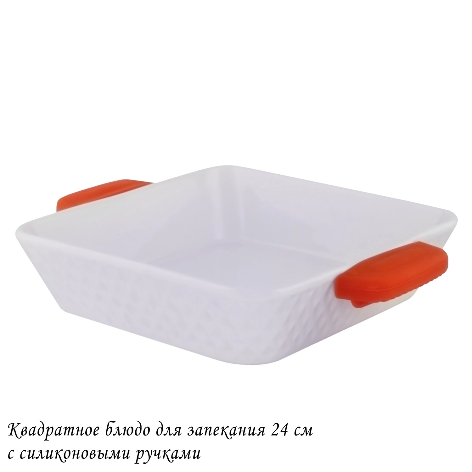 142-139 Квадратное блюдо для запекания 24см с силикон.ручками в под.уп.(х12)Фарфор 2 фото