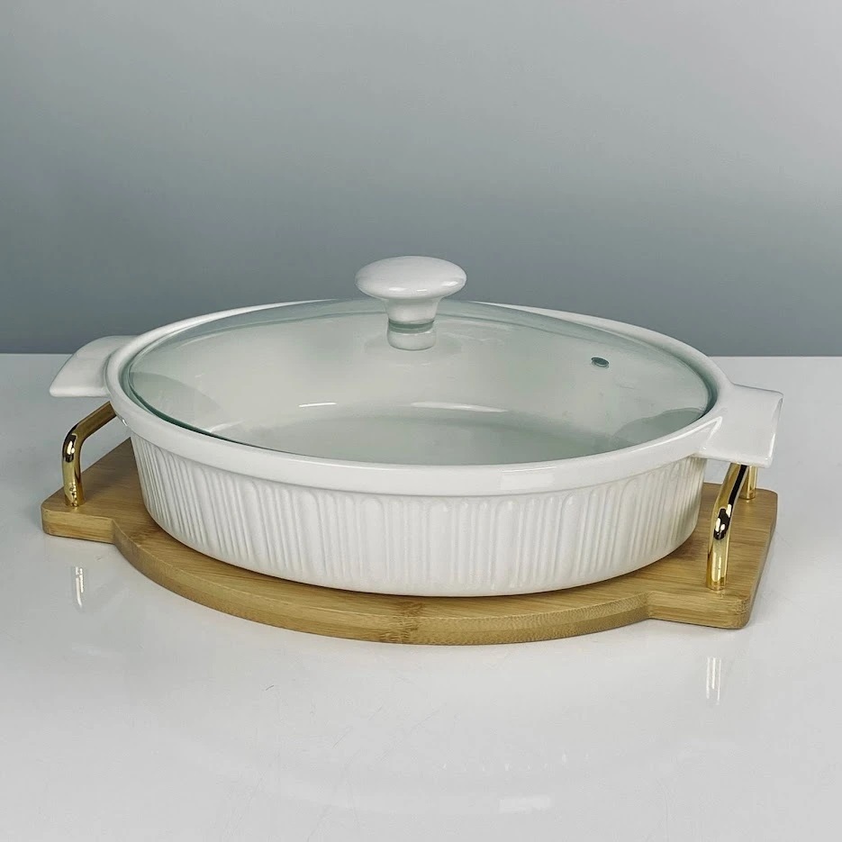 142-093 Овальное блюдо для запекания 30 см с бамбук.крышкой в под.уп.(х8)Фарфор 3 фото