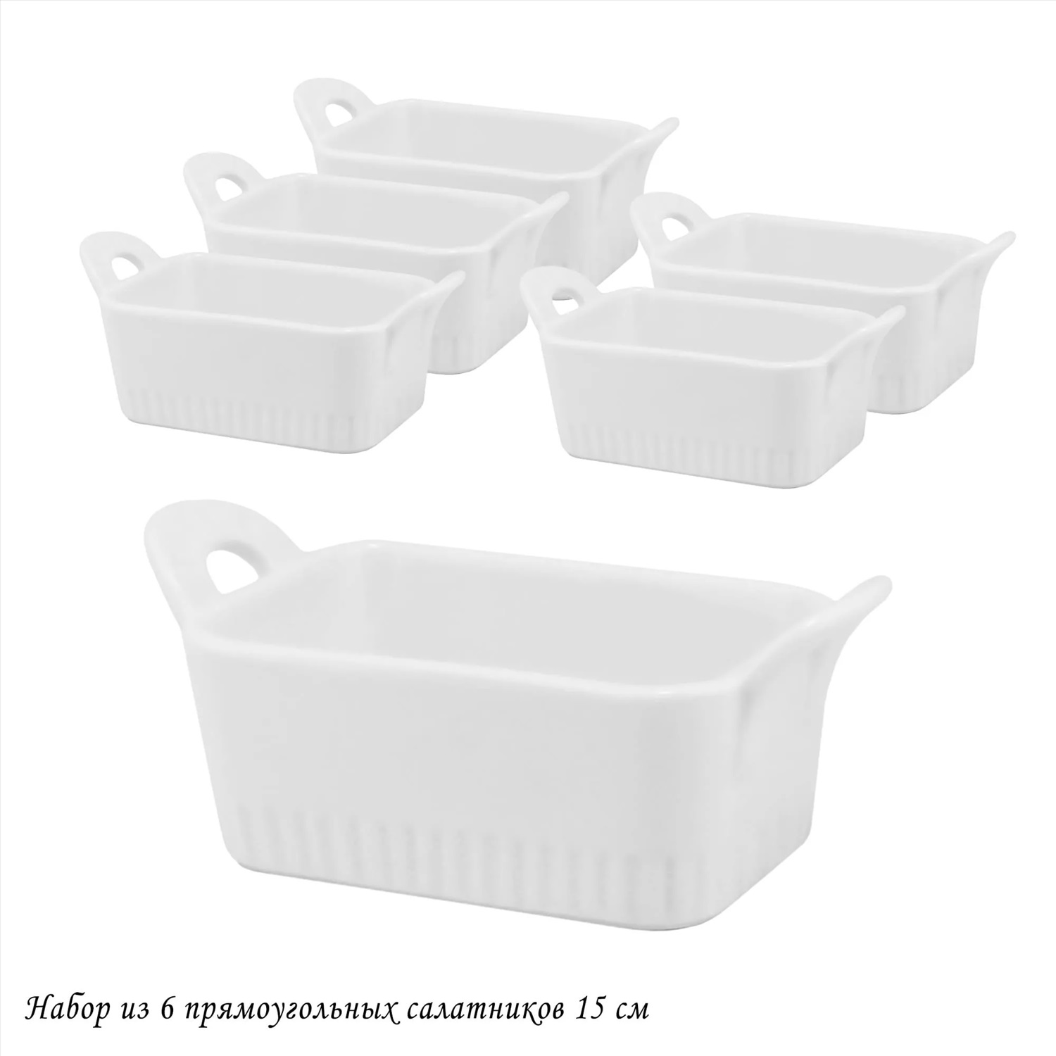 142-053 Набор из 6 прямоугольных салатников 15см в под.уп.(х8)Фарфор 2 фото