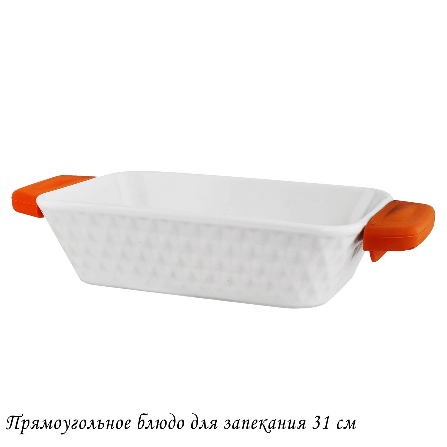 142-143 Прямоугольное блюдо для запекания 31см с силикон.ручками в под.уп.(х8)Фарфор 3 фото