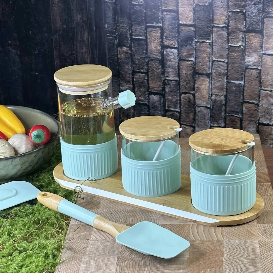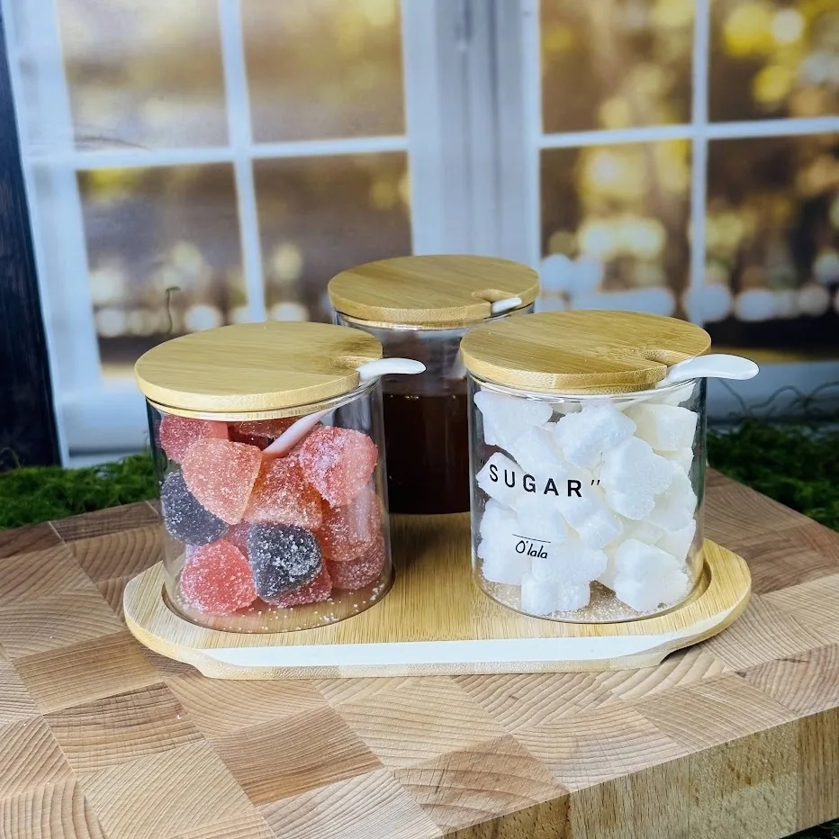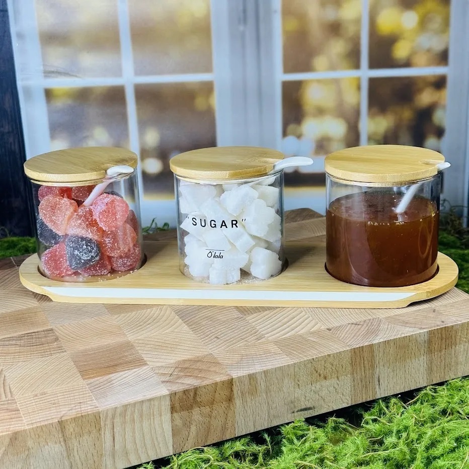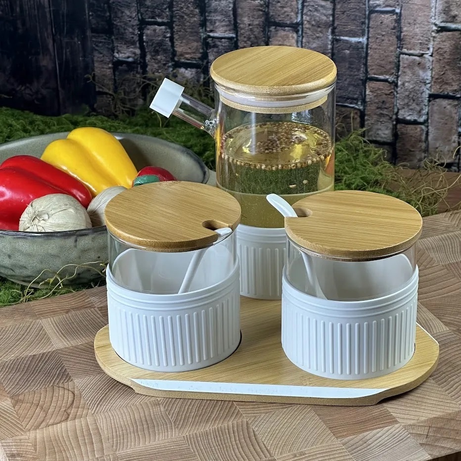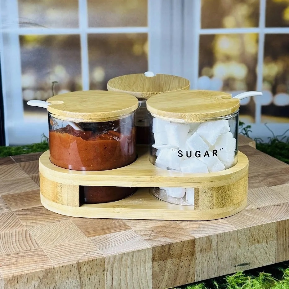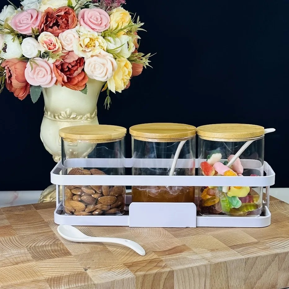 160-232 Набор для специй 3пр. с ложками на подставке в под.уп.(х24)Стекло