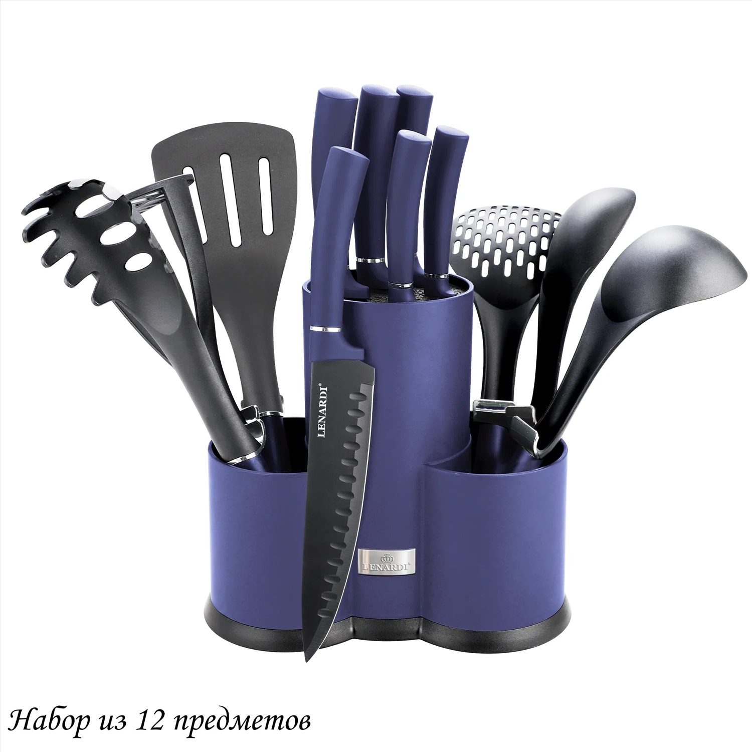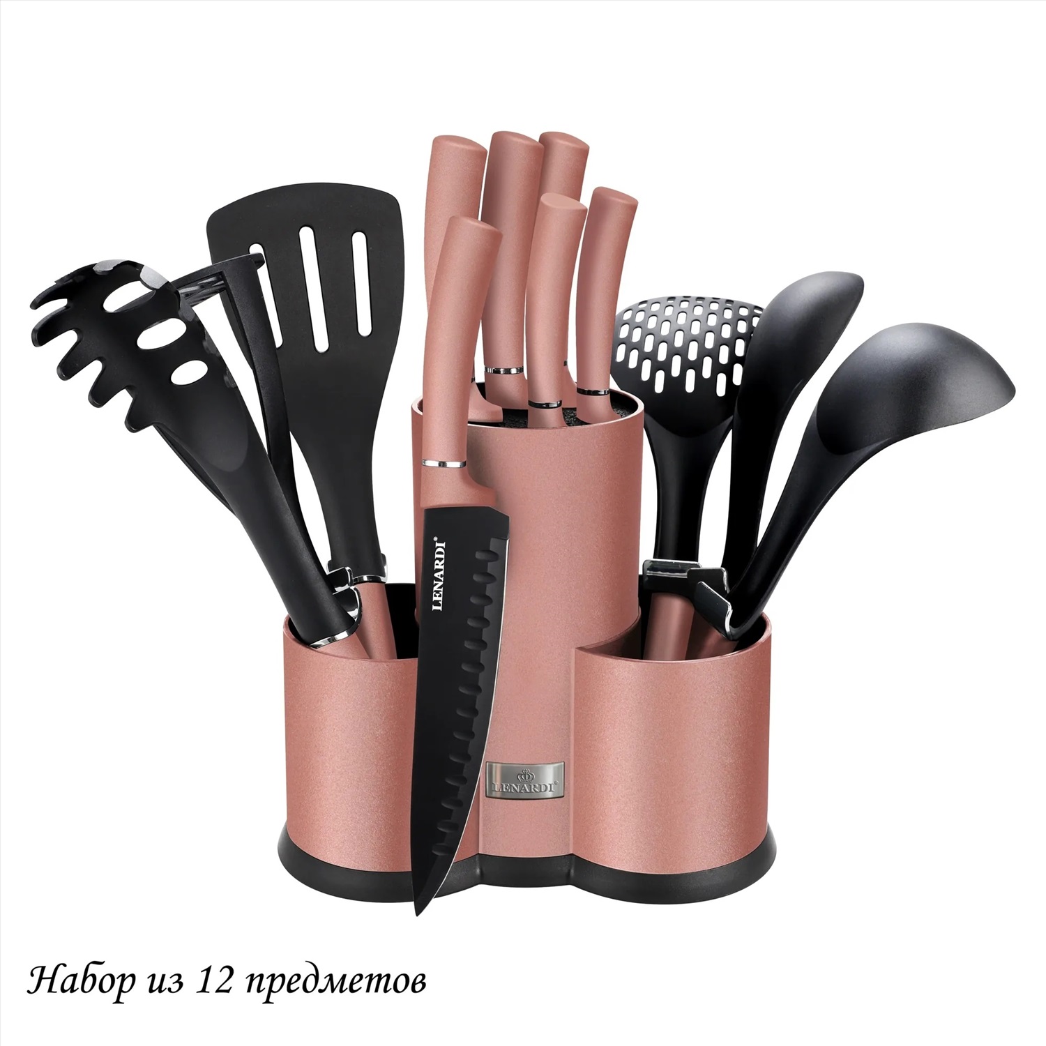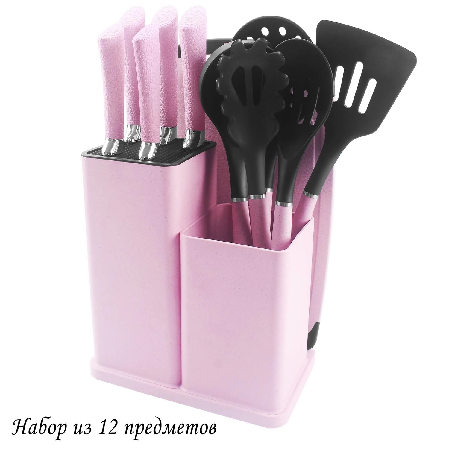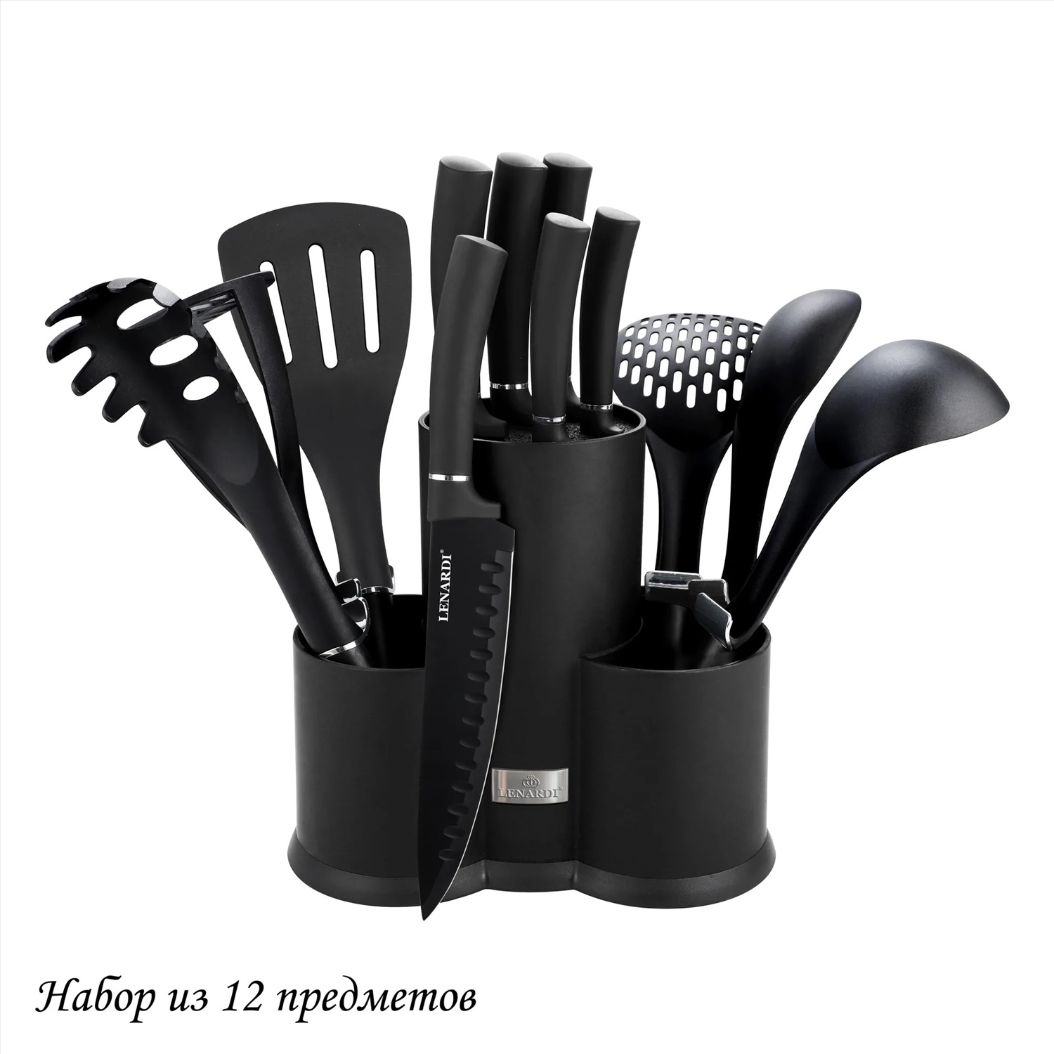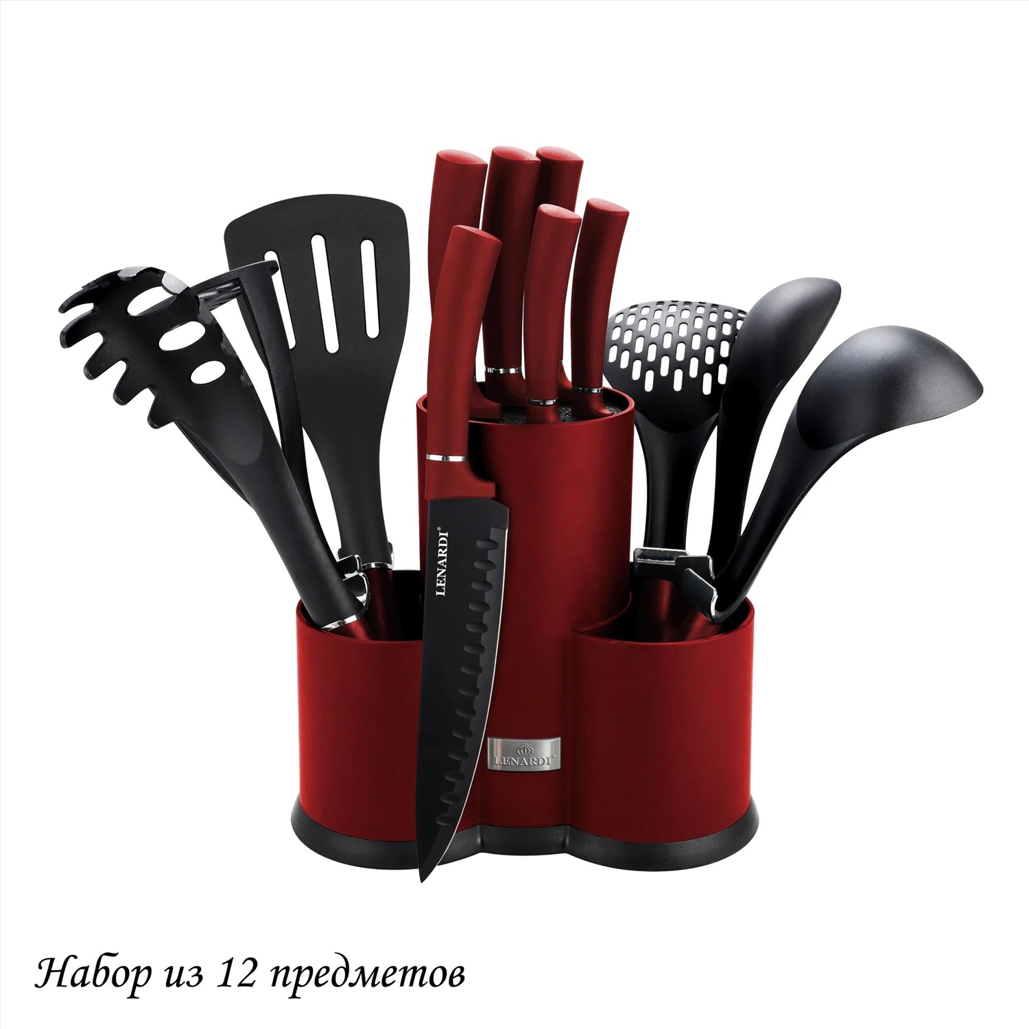 196-028 Набор ножей и кухонных принадлежностей 12пр. на подставке в под.уп.(х6)Нержавеющая сталь 3 фото