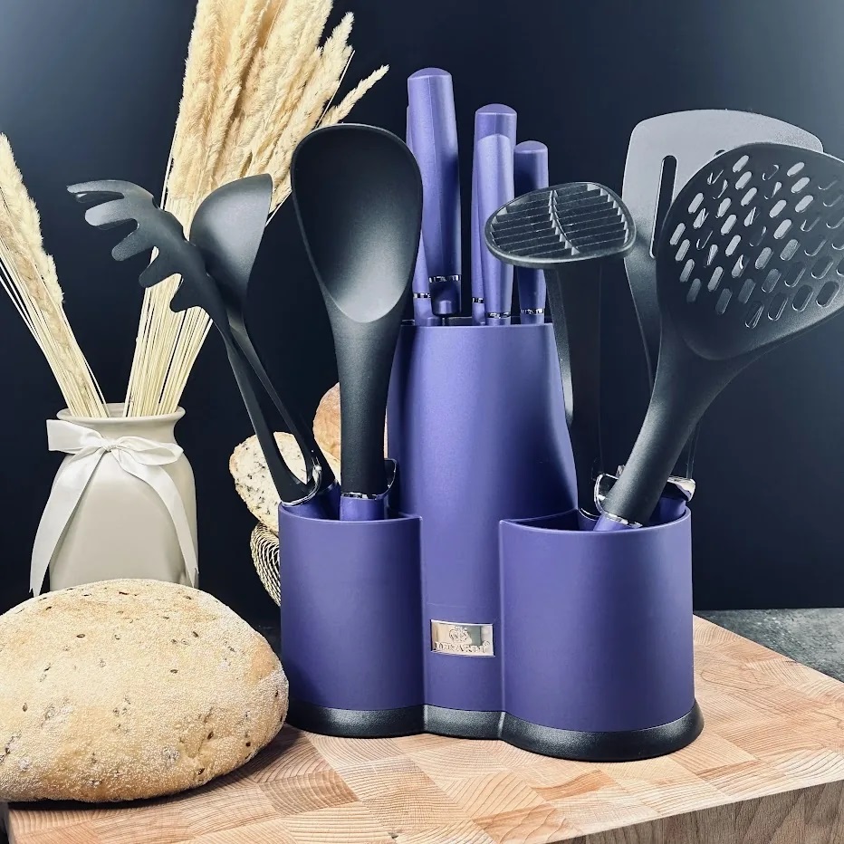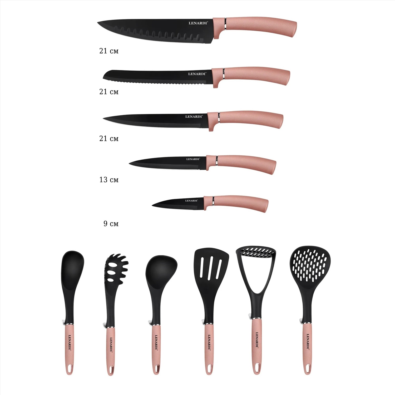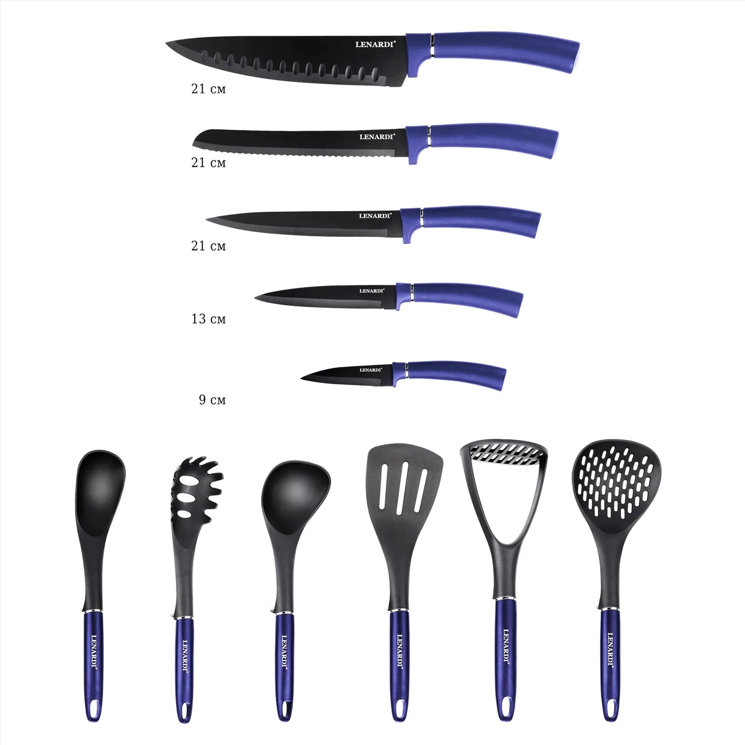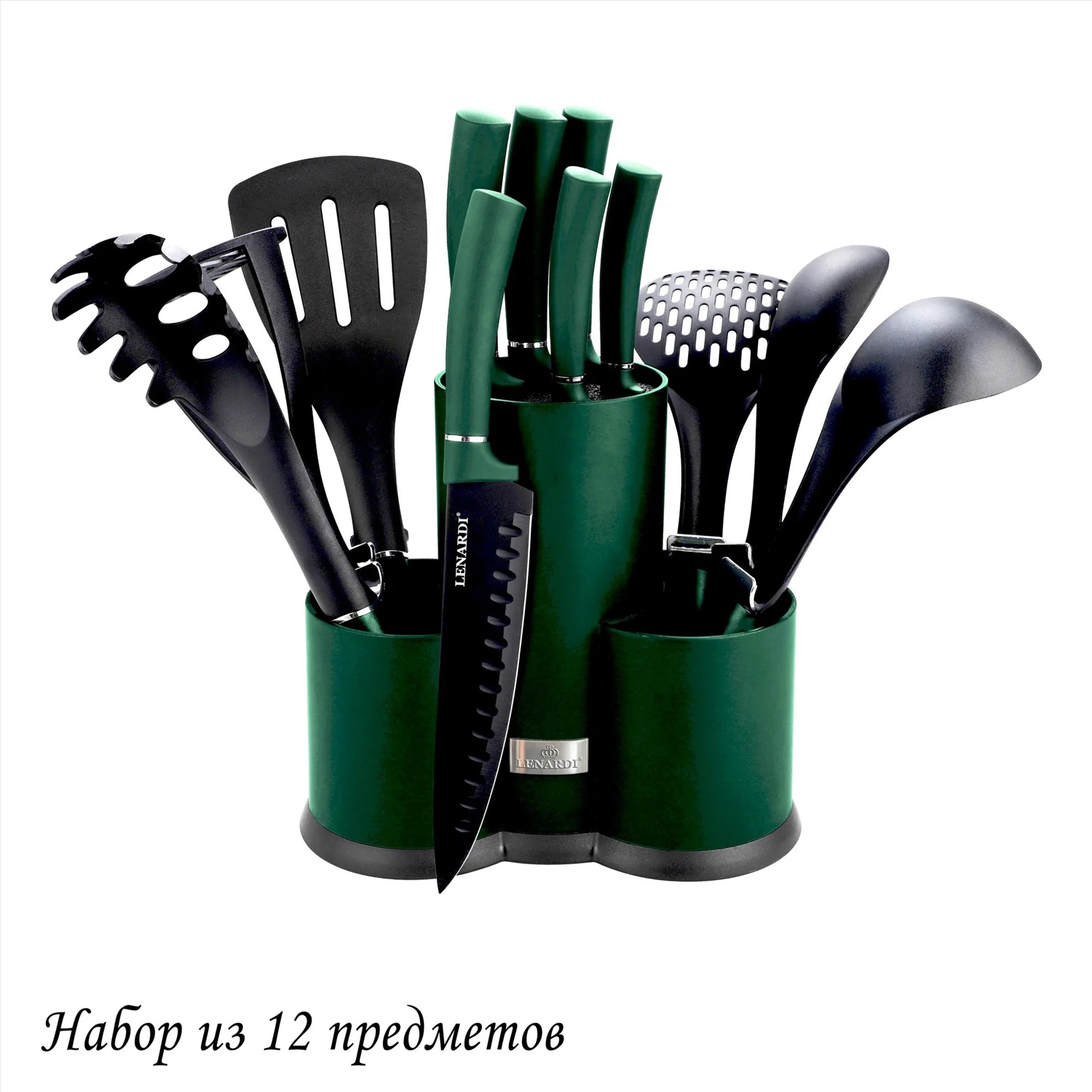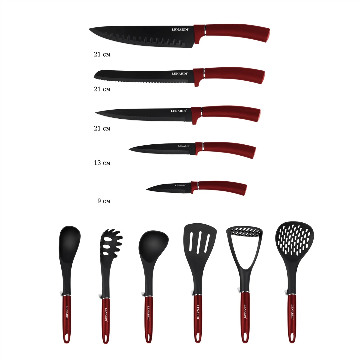 196-028 Набор ножей и кухонных принадлежностей 12пр. на подставке в под.уп.(х6)Нержавеющая сталь 3 фото