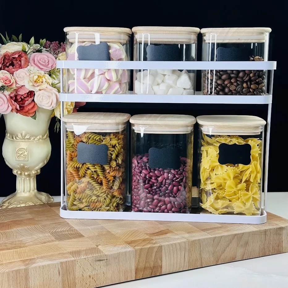 160-243 Набор из 6 банок для сыпучих продуктов на метал.подставке в под.уп.(х6)