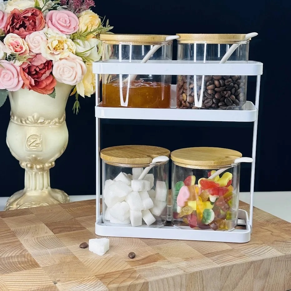160-239 Набор из 4 банок для сыпучих продуктов на метал.подставке в под.уп.(х6)