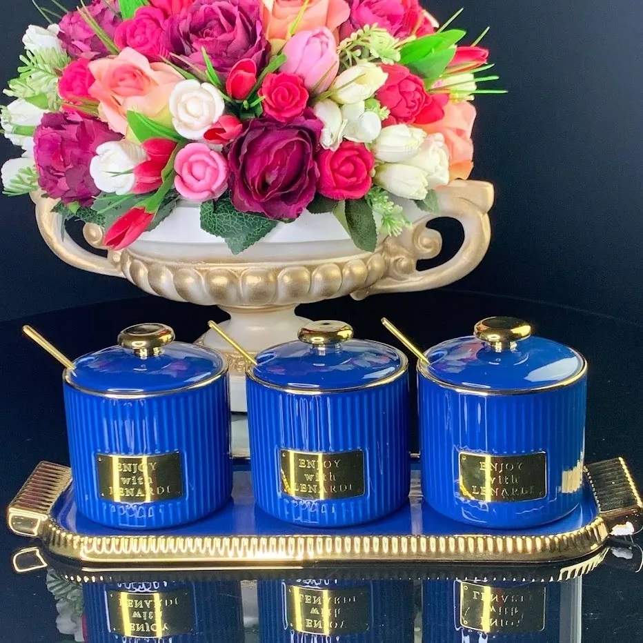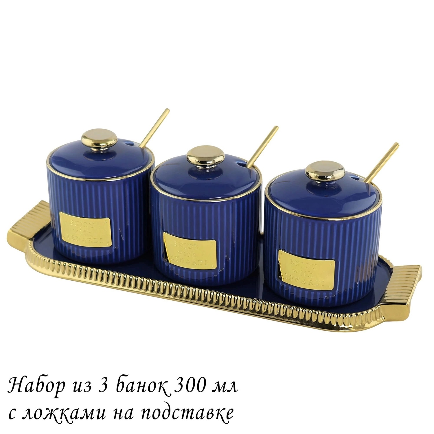 106-220 Набор из 3 баночек 300 мл с ложками на подставке, синий  в под.уп.(х12) 4 фото