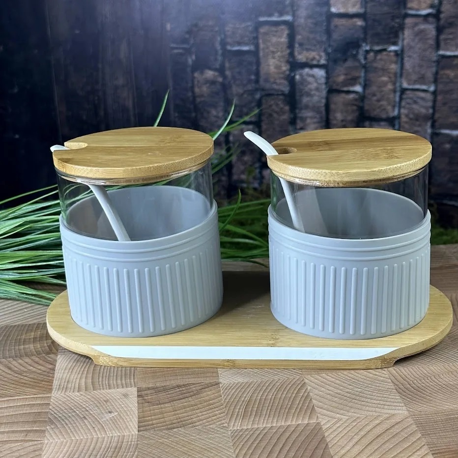 160-234 Набор для специй 2пр. с ложками на подставке в под.уп.(х24)Стекло
