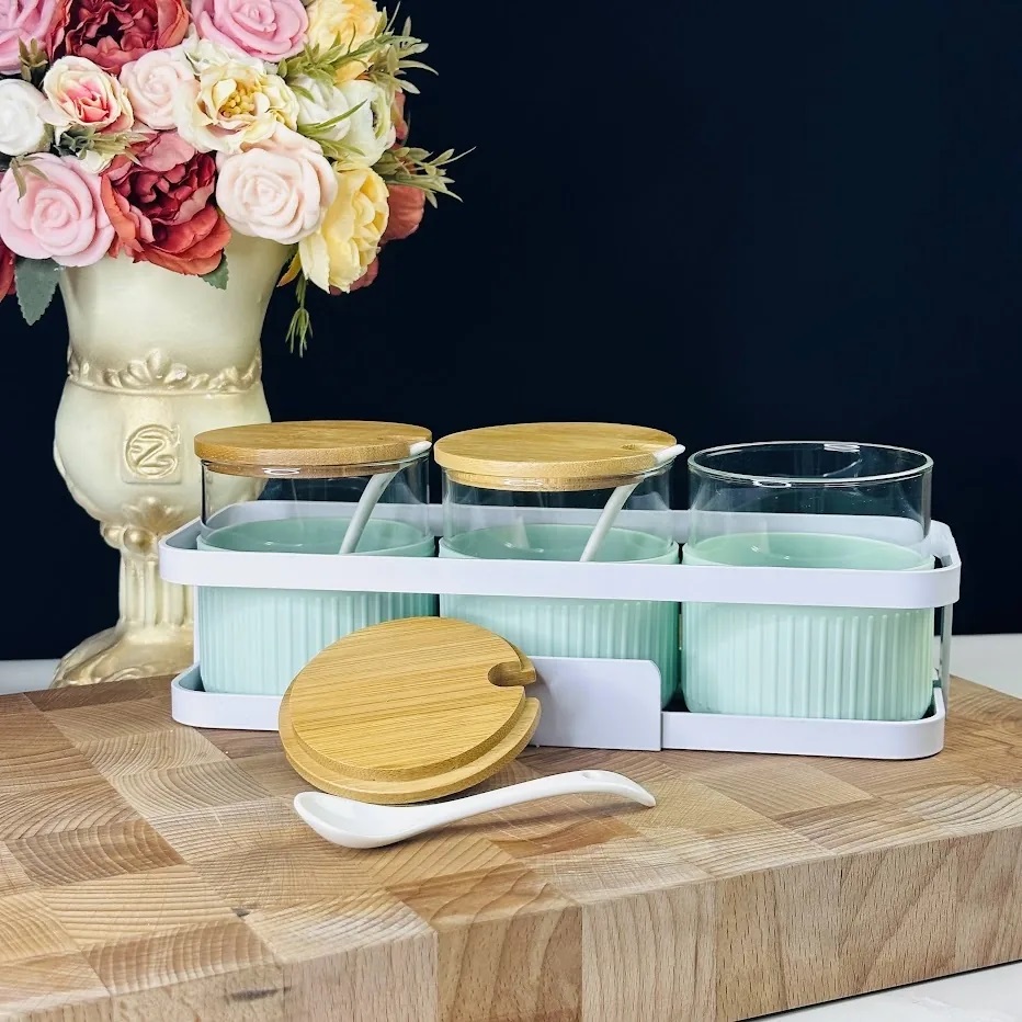 160-242 Набор для специй 3пр. 480 мл с ложками на метал.подставке в под.уп.(х6)
