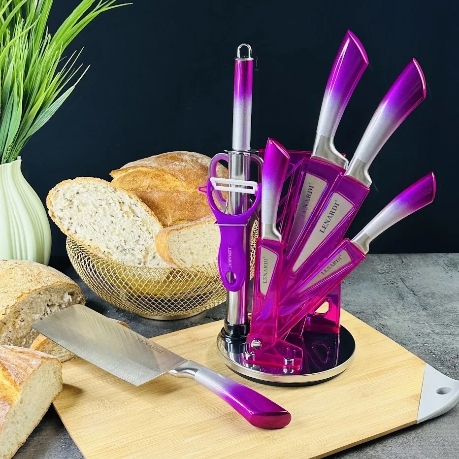 196-006 Набор ножей 9пр. на подставке в под.уп.(х6)Нержавеющая сталь 3 фото