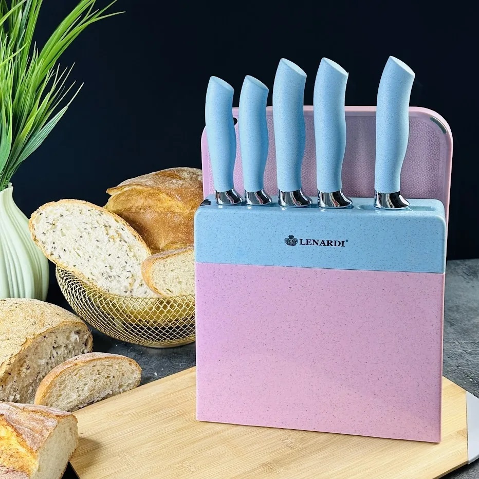 196-025 Набор ножей 7пр. с разделочной доской на подставке в под.уп.(х8) 3 фото