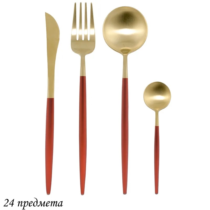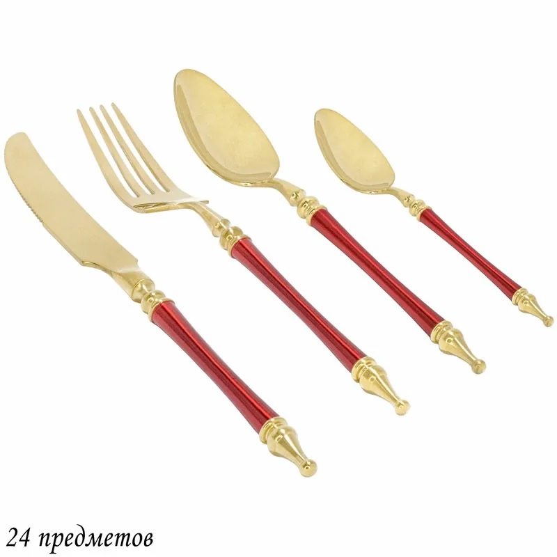 197-020 Набор столовых приборов 24пр. красный в под.уп.(х12) 3 фото