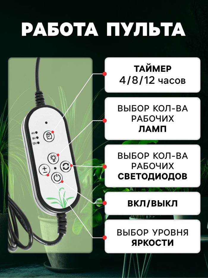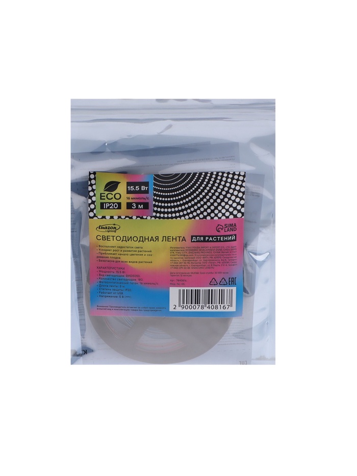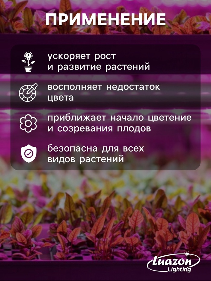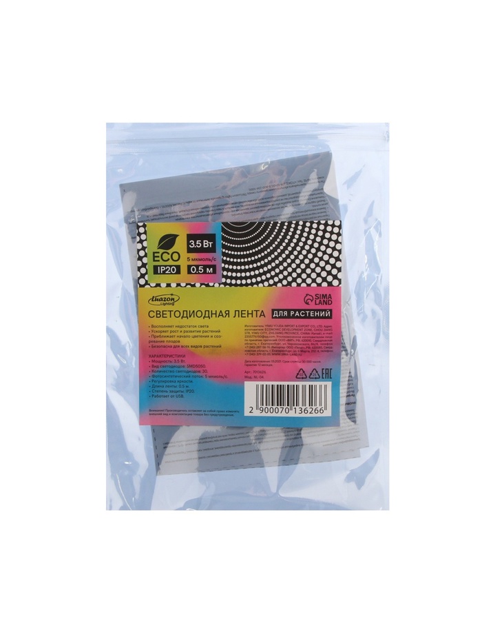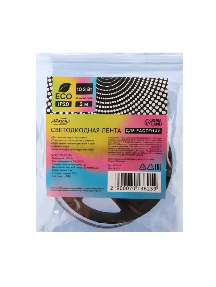 Фитолента для растений Luazon Lighting, светодиодная, 3.5 Вт, 0.5 м, IP20, 5 В, 60 LED/м, диммер, USB, SMD5050, мультиспектральная