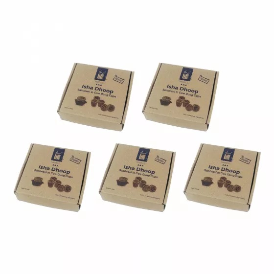 Набор Самбрани в чашках из коровьего навоза (5 x 12 шт), Sambrani in Cow Dung Cups Set, произв. Isha Life
