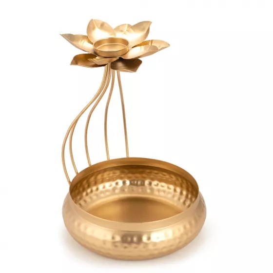Подсвечник в виде Лотоса с Чашей Урли, Lotus Tealight with Base of Urli Bowl, произв. CraftVatika
