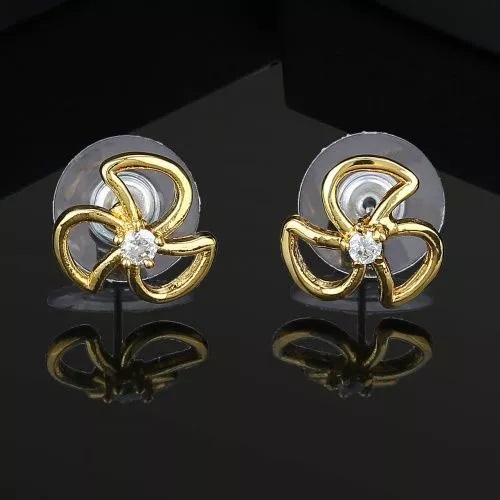 Gold Tone Plated Ad White Stone Small Stud Earrings