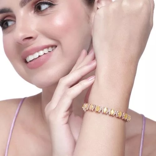 Estele Rose Gold Plated CZ Fascinating Designer Bracelet with Mint yellow Stones for Girls/Women
