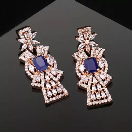 Estele Rose Gold Plated CZ Ravishing Earrings with Blue Stones for Women