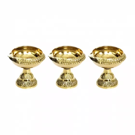 Набор латунных Кубер Дий с подставкой (3 шт), Brass Kuber Diya with Stand Set, произв. Shubhkart