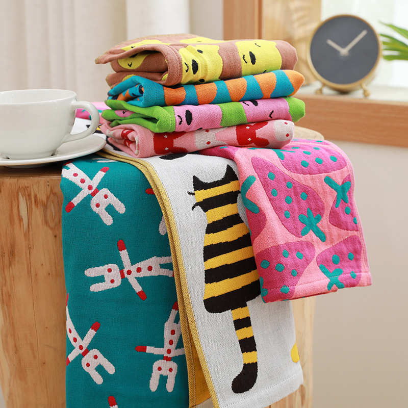 Полотенчики волшебные. Три слоя муслина. Впитывают очень сильно, сохнут быстро, никогда не висят мокрыми. Нежные, мягкие. Расцветки яркие, не линяют. Единственный нюанс - садятся. Поэтому размер лучше рассчитывать с запасом.