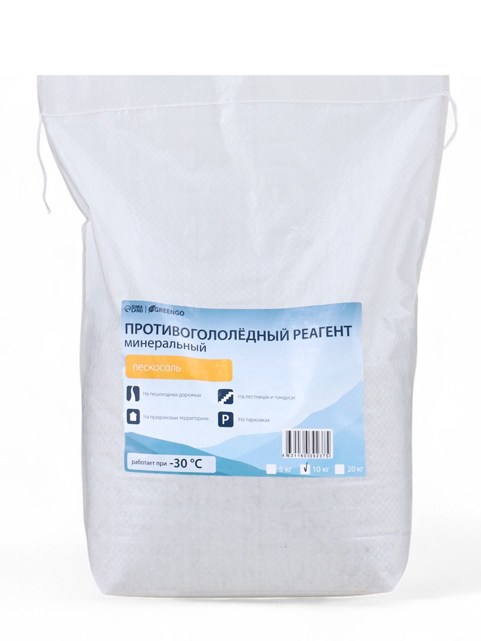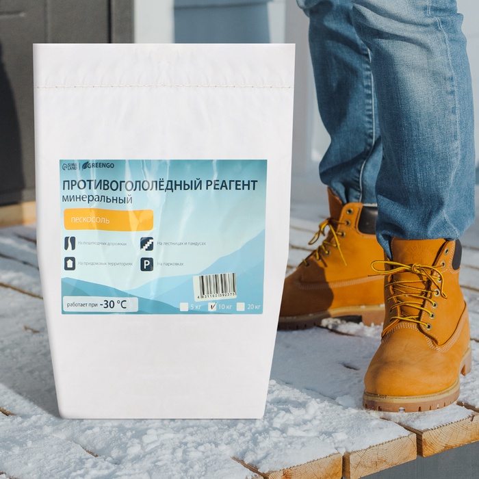 Реагент противогололёдный, пескосоль, 10 кг, работает при – 30 °C, в мешке, Greengo 9 фото
