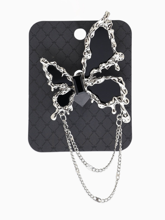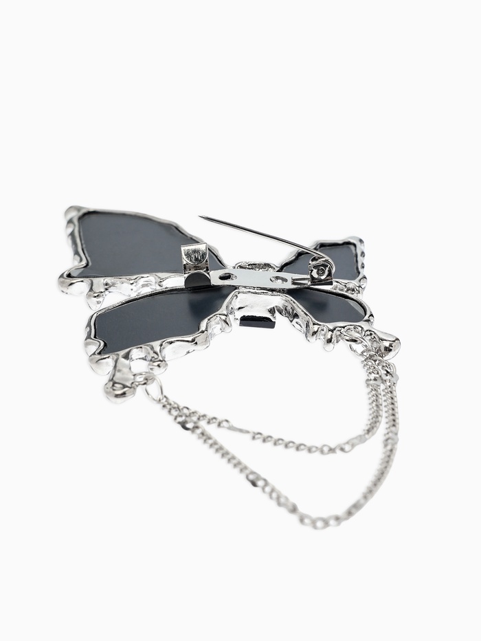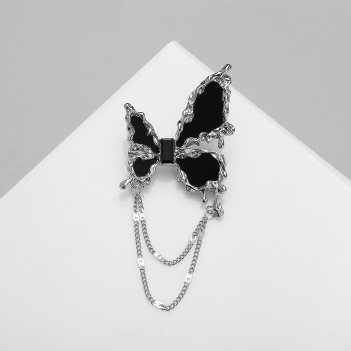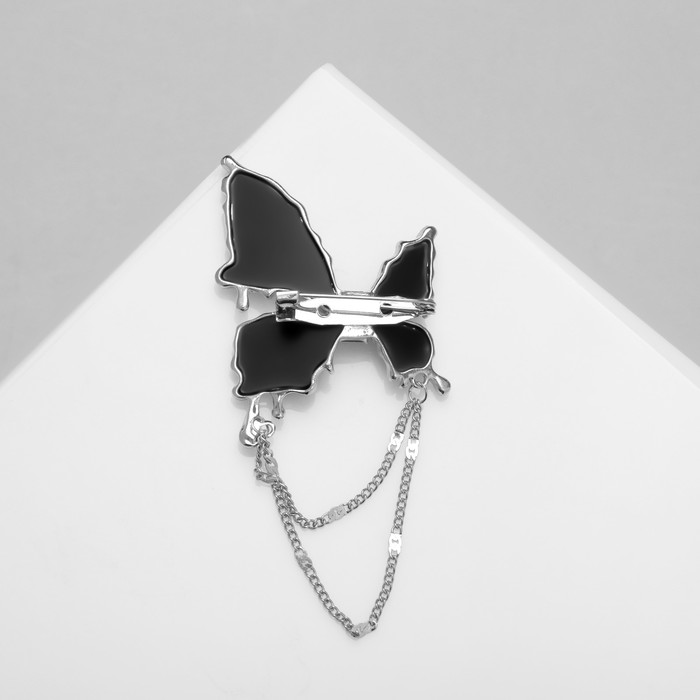 Брошь «Бабочка», тренд, чёрная в серебре 6 фото