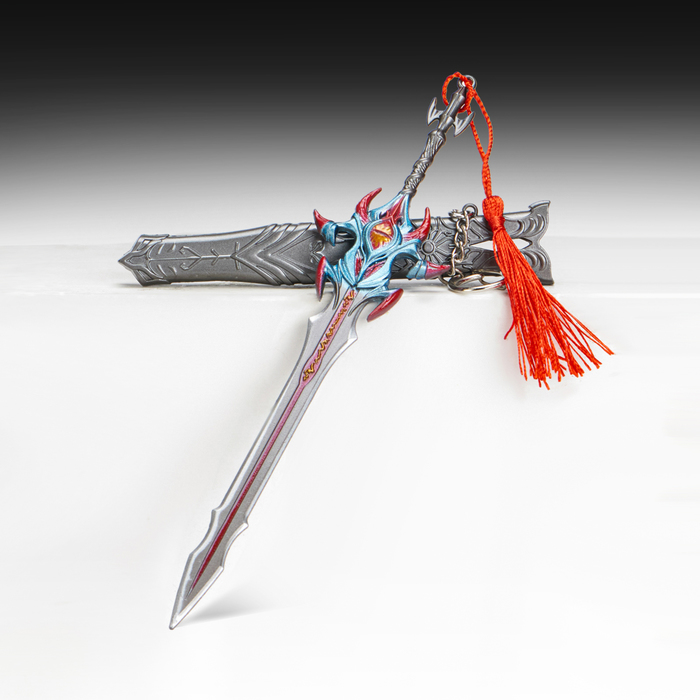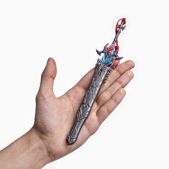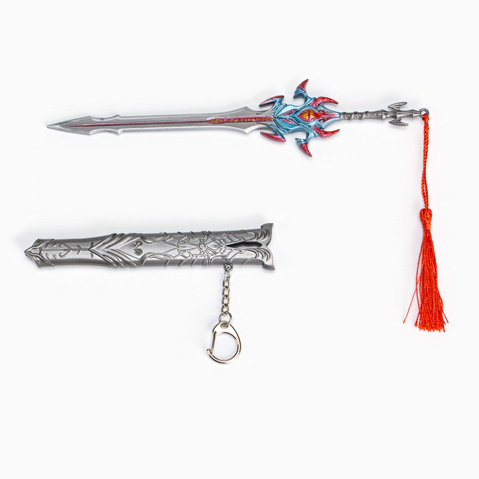 Макет оружия «Сувенирный меч Асура», подвесной, брелок, 21 см, серебристый с красным 7 фото