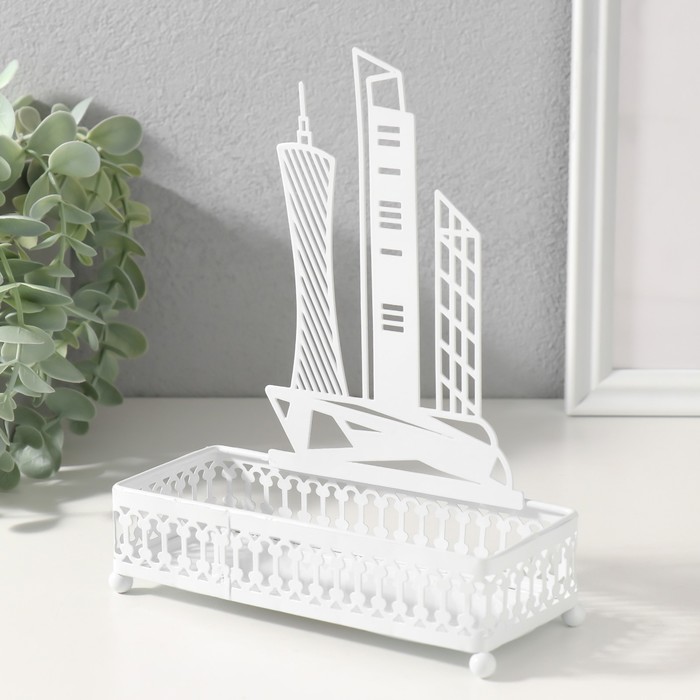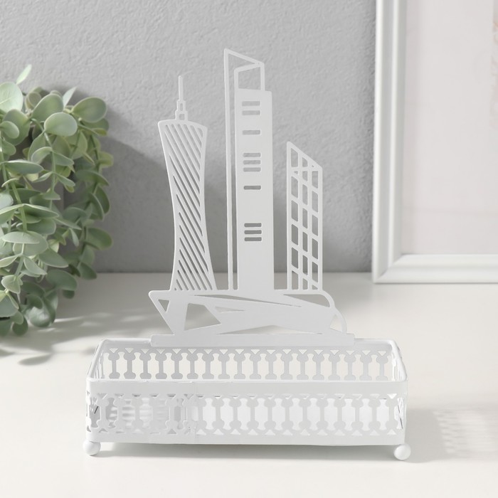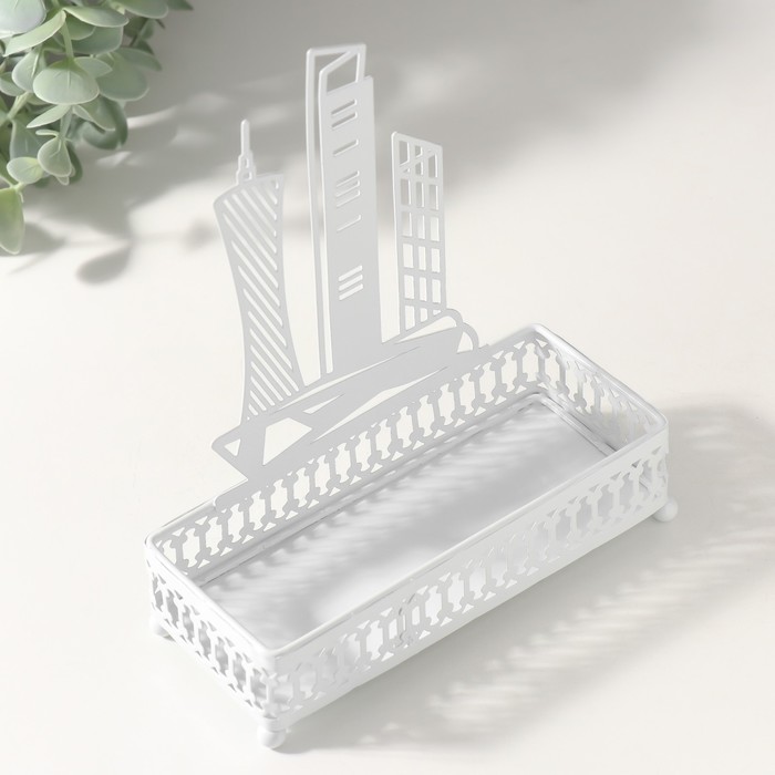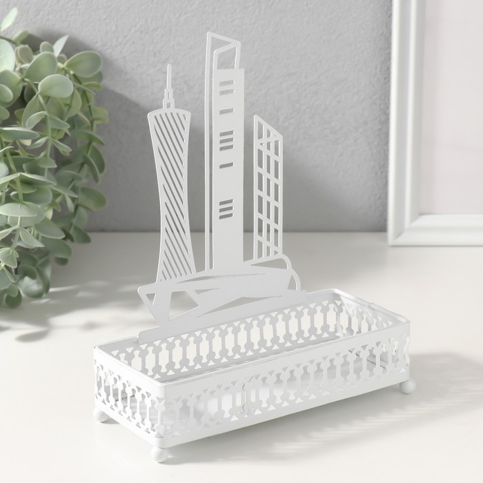 Подставка для мелочей металл «Город», белый, 6.3×14.5×18.5 см 5 фото