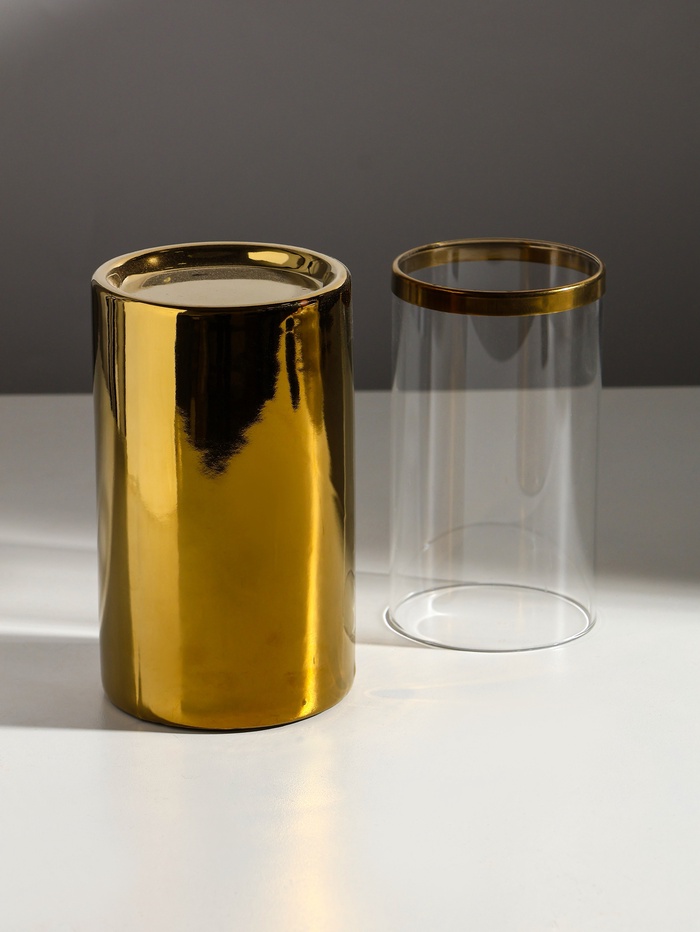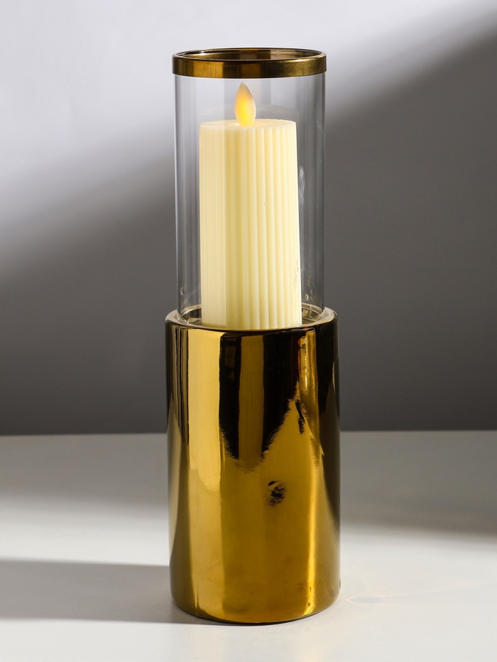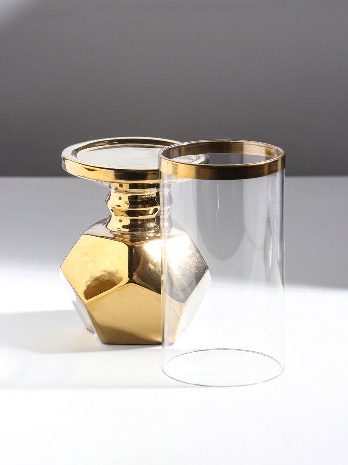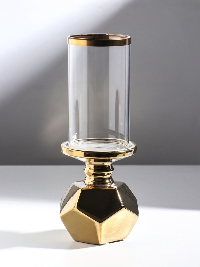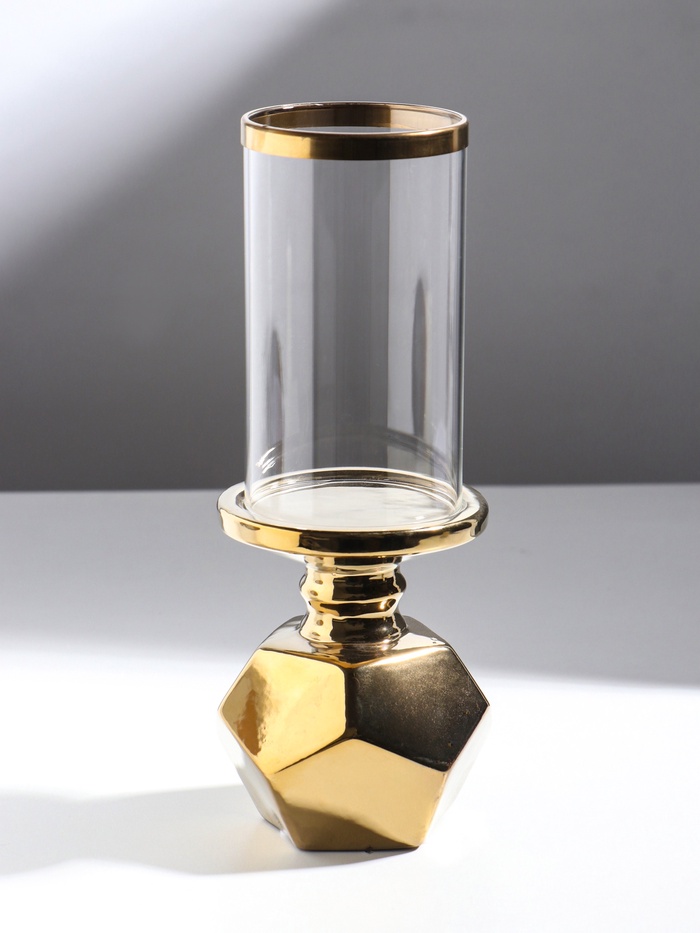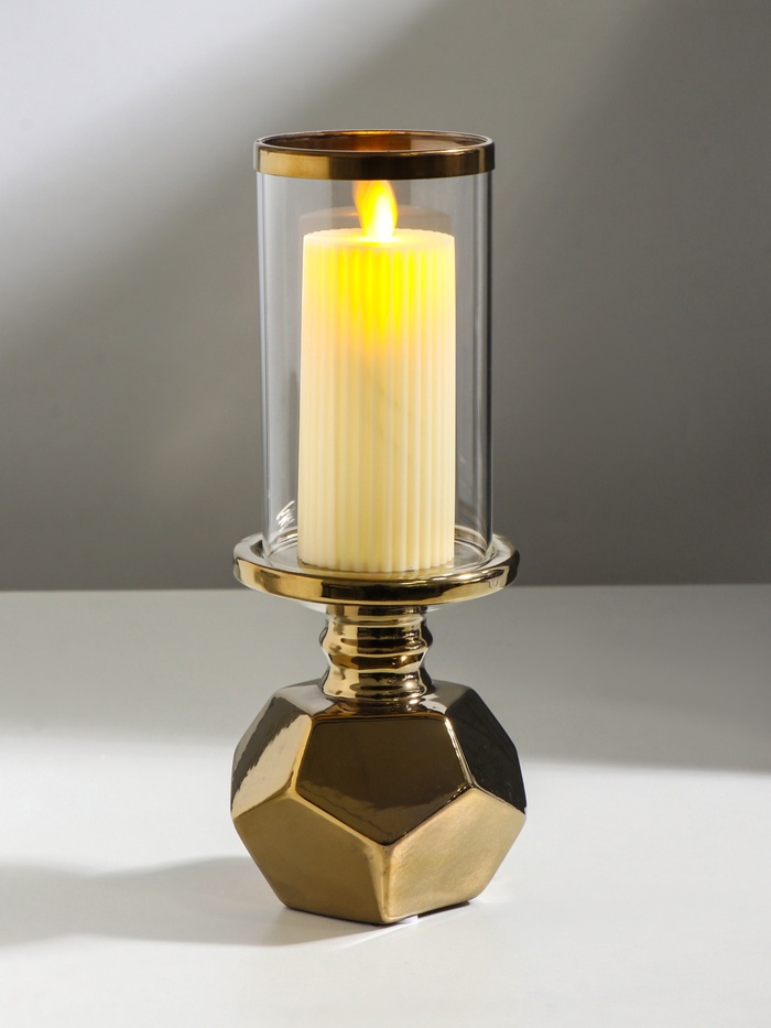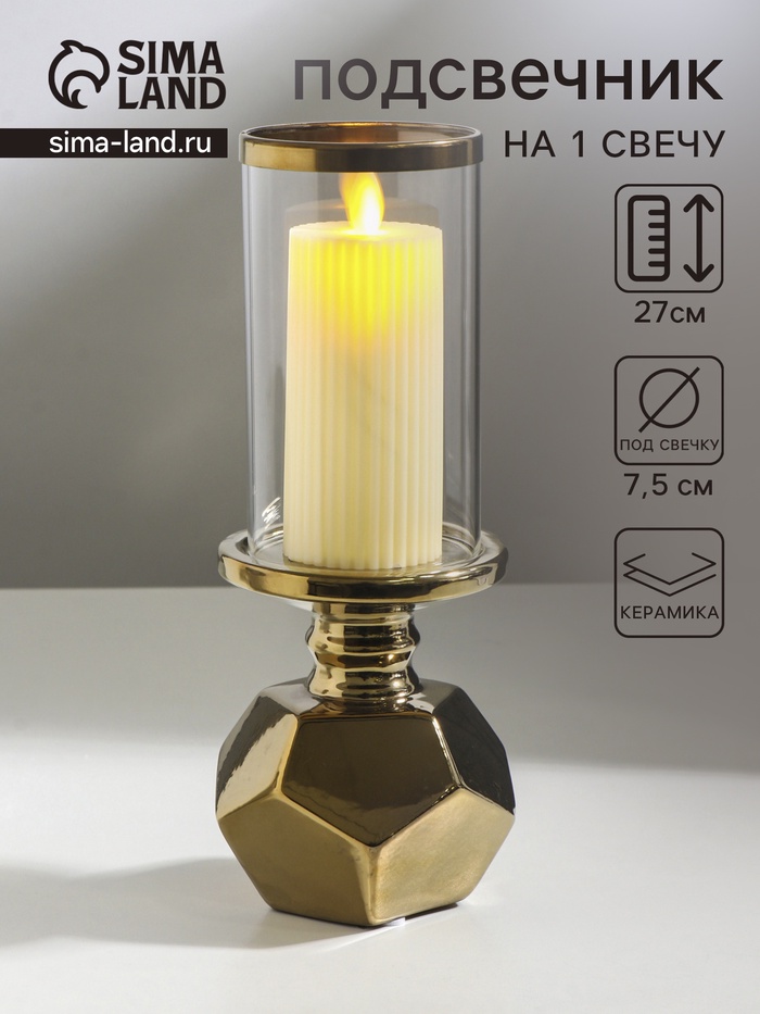 Подсвечник на 1 свечу «Грани», керамика, стекло, d=7.5 см, золото, 10.5×10.5×27 см 6 фото