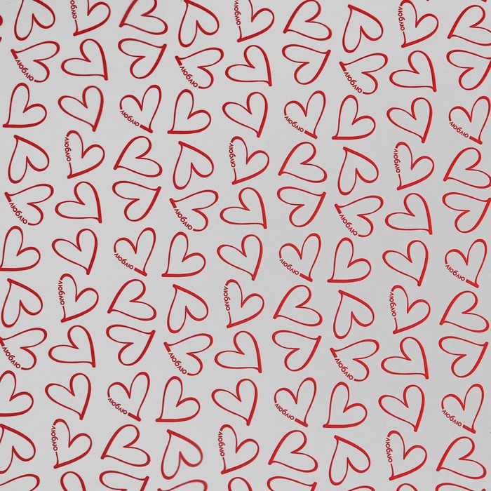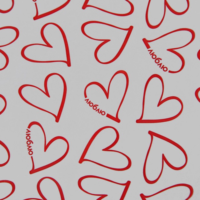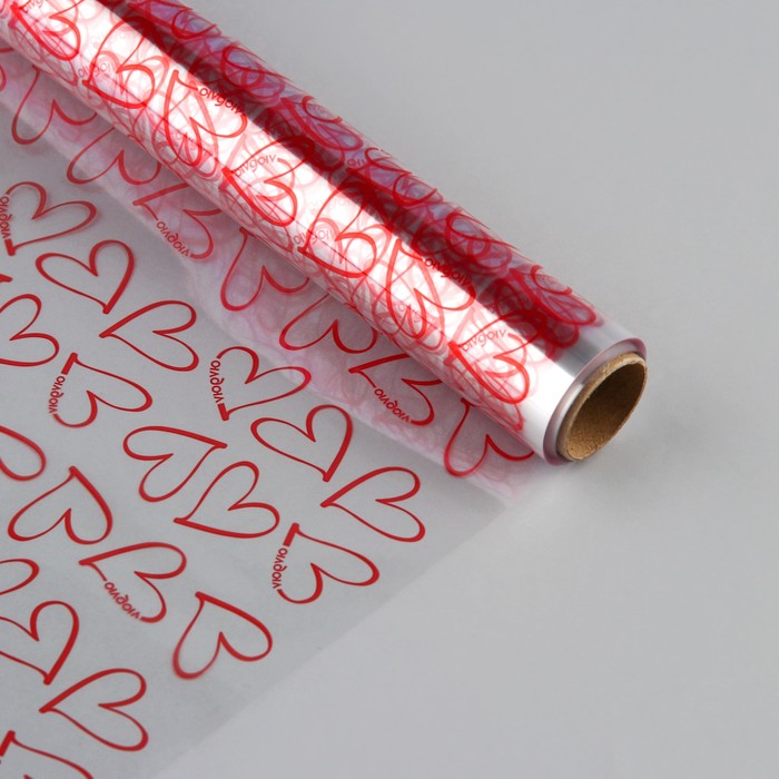 Плёнка для цветов упаковочная глянцевая прозрачная «Сердца», красные, 0.6×10 м 3 фото