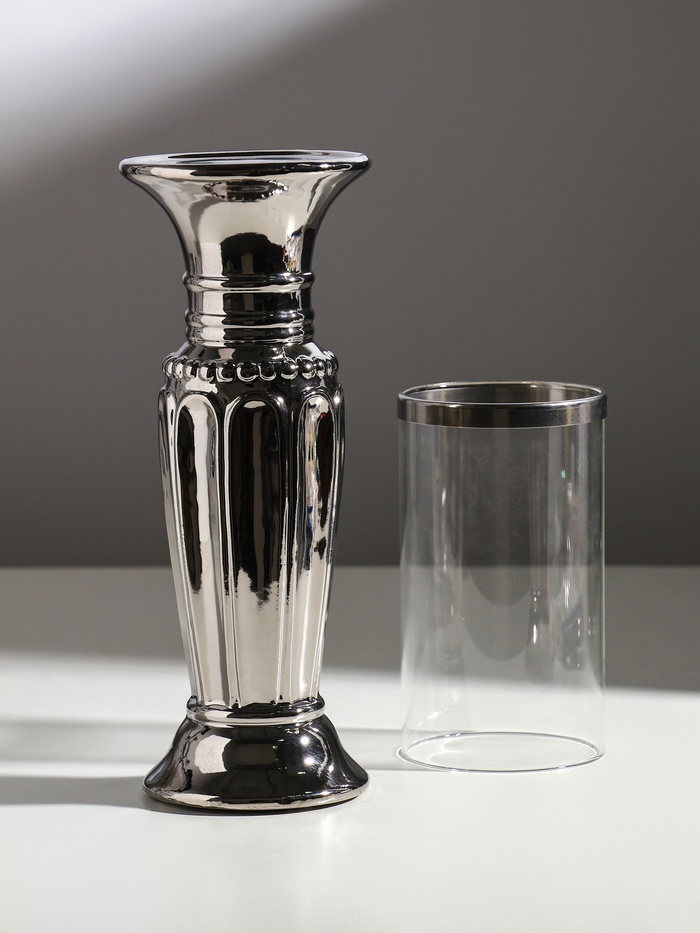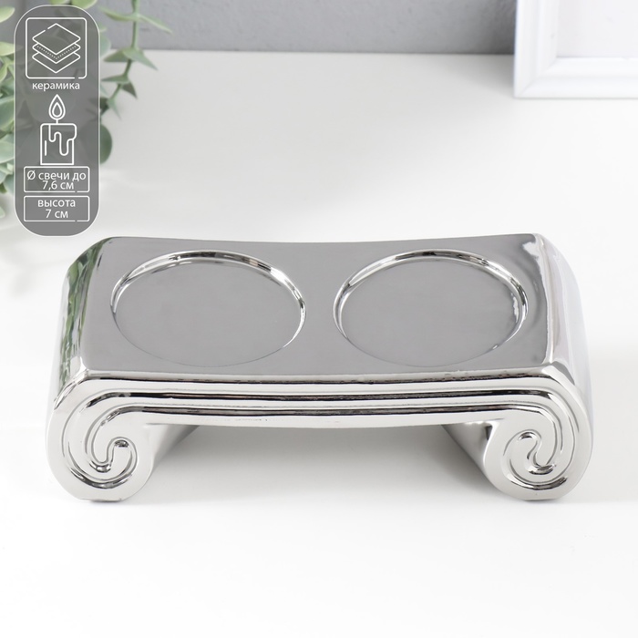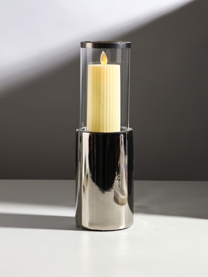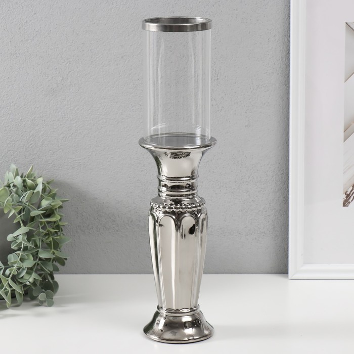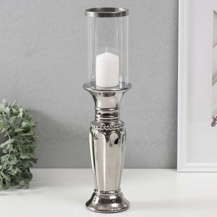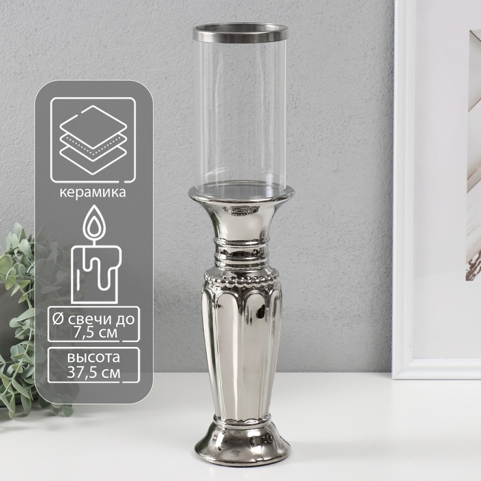 Подсвечник на 1 свечу «Хром», керамика, стекло, d=7.5 см, серебро, 9.2×9.2×29.5 см 4 фото
