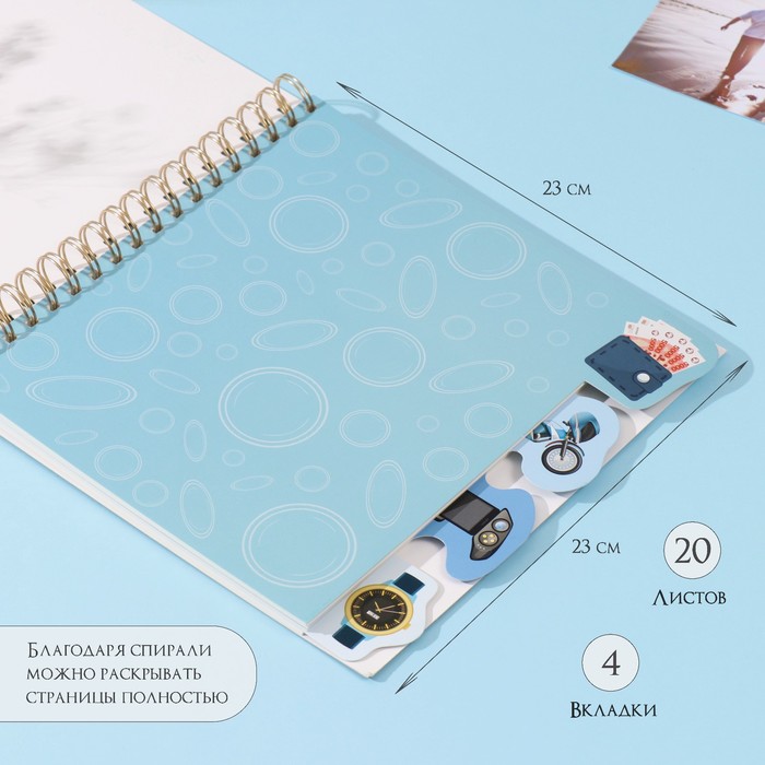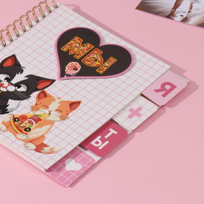 Фотоальбом на спирали 20 листов «Котики с пиццей», объёмный элемент и 4 вкладки, 24×24 см 9 фото