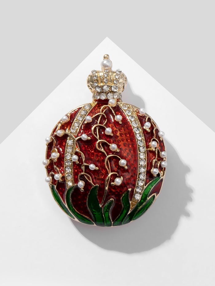Брошь «Гранат», с короной, чёрно-белая в золоте 6 фото