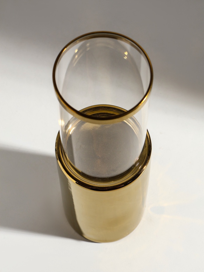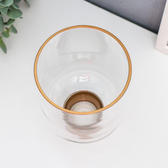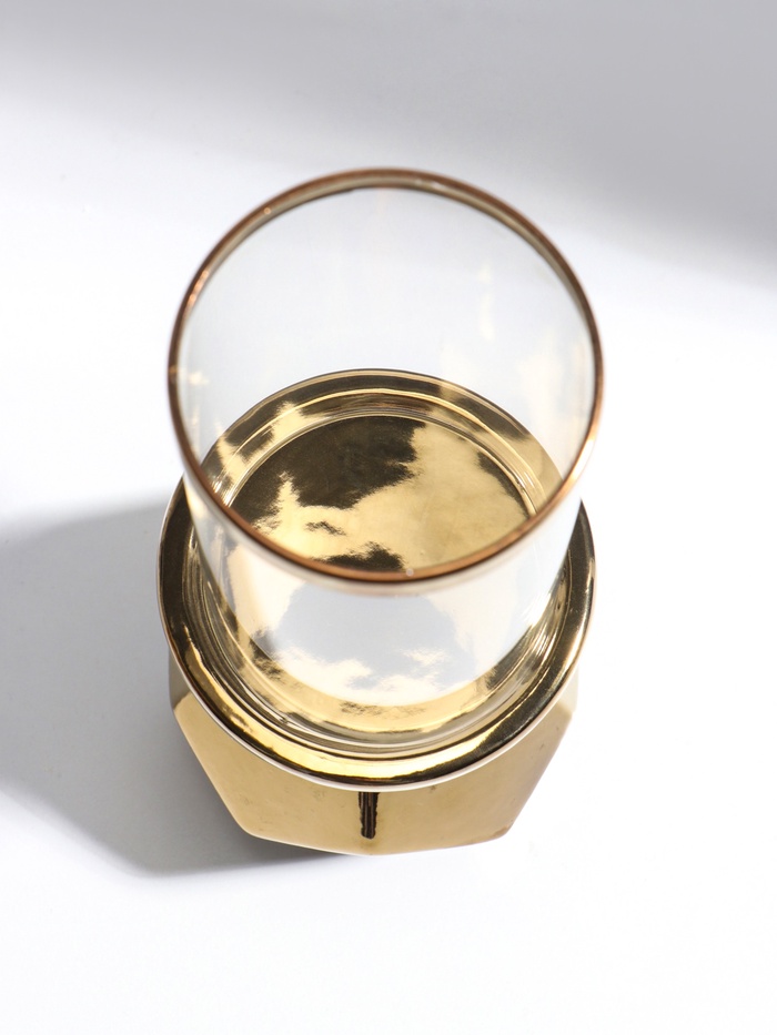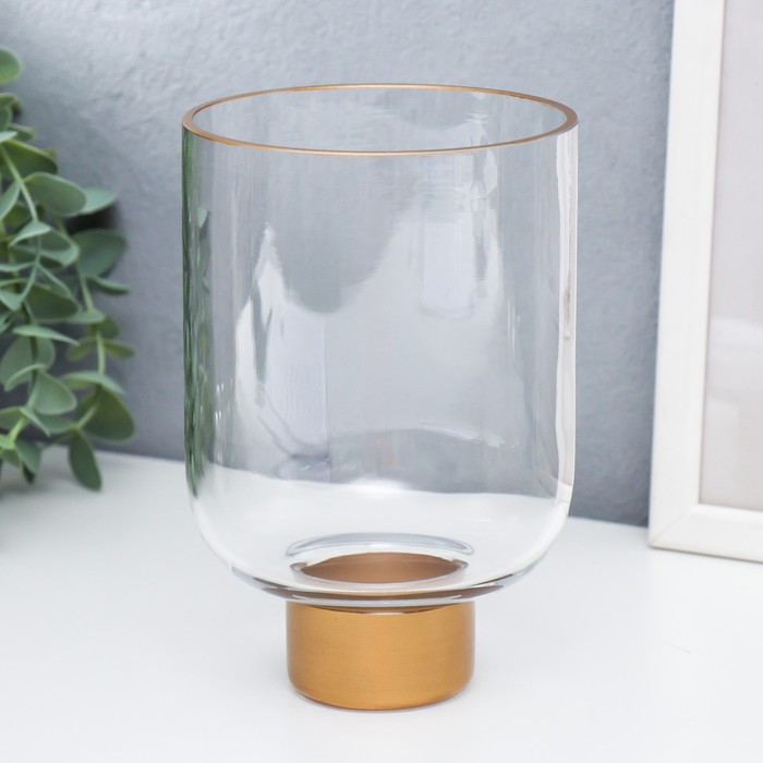 Стеклянный подсвечник на 1 свечу «Стакан на ножке», прозрачный и золото, 15.8×10.5×10.5 см 4 фото