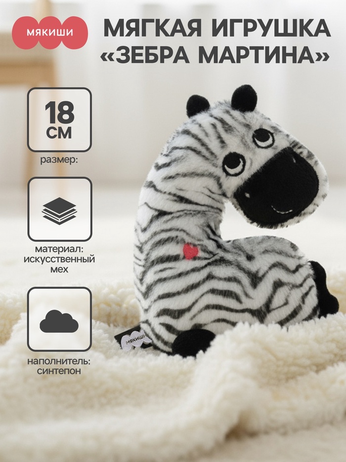 Мягкая игрушка «Зебра Мартина», Пушистики, 18 см 7 фото