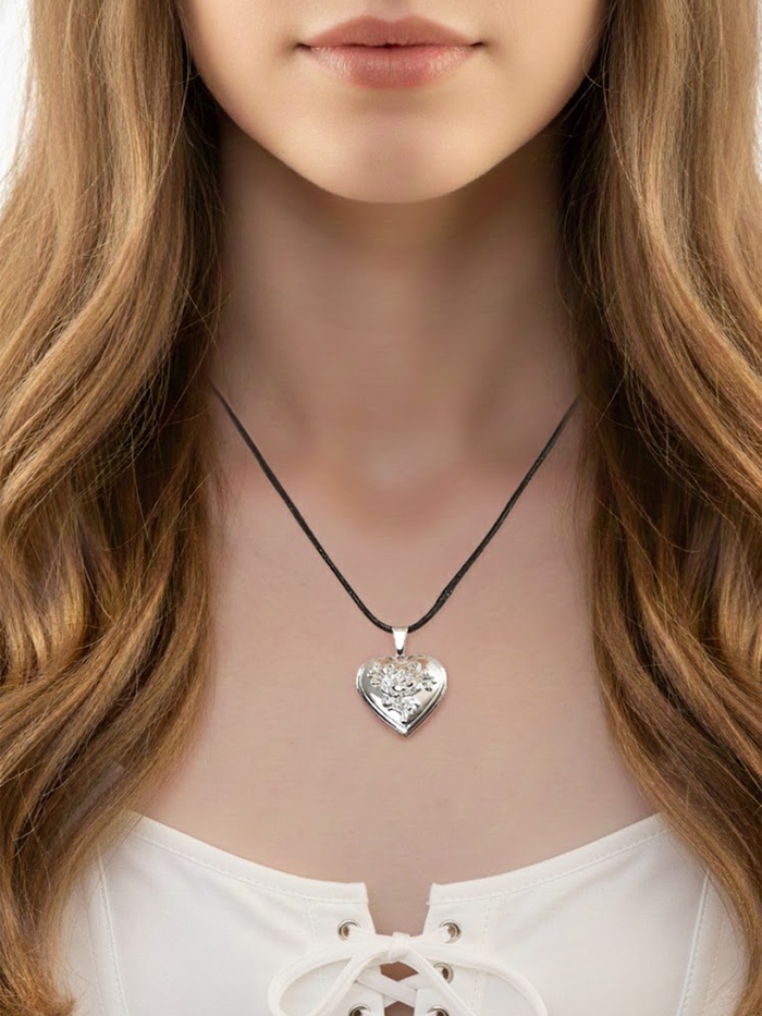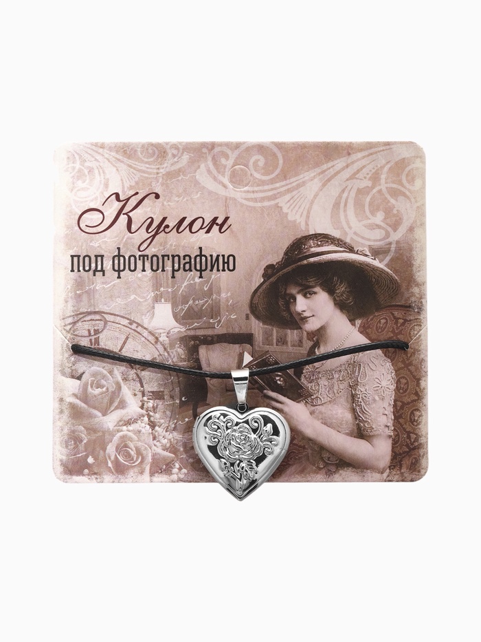 Кулон на шнурке «Для фото», сердце с розой, цвет чернёное серебро на чёрном шнурке, 45 см 8 фото