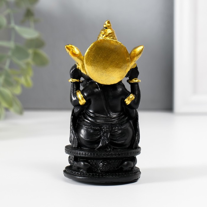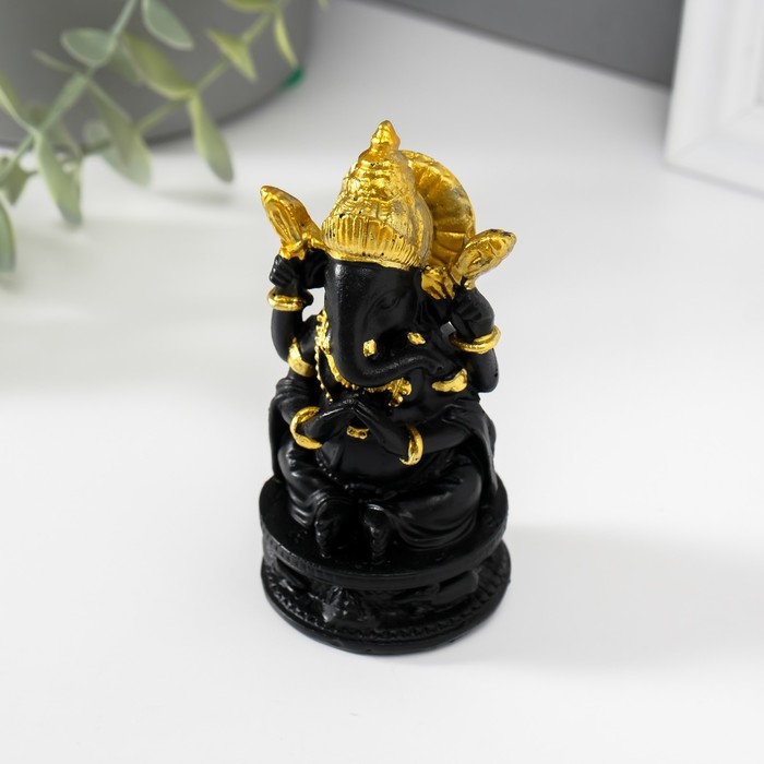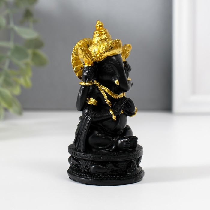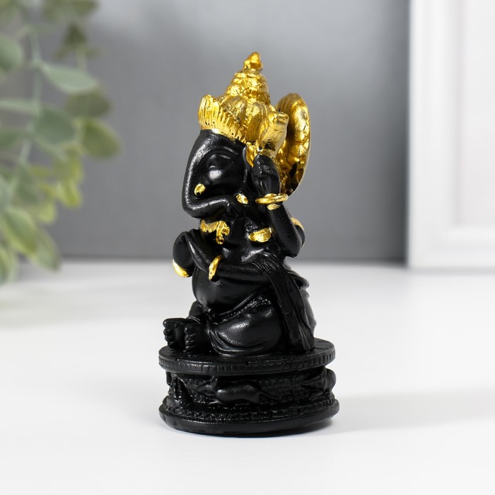 Нэцкэ фигурка полистоун «Ганеша в золотом головном уборе», чёрный, 4.7×4.7×9.7 см 5 фото